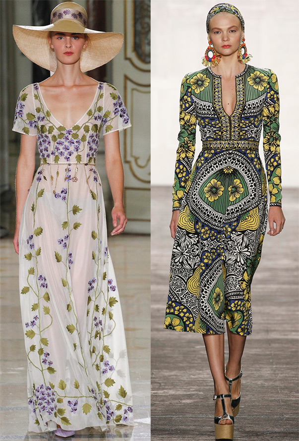 Fleurs de steppe et de prairie - coquelicots, bleuets, camomille, fleurs fantaisistes dans une palette barbouillée, mêlés d'abstraction et de géométrie…. Oiseaux, papillons voltigeant de la jupe au chemisier, du chemisier au short... L'imprimé ethnique est également très prisé, qui est parfois proposé par les créateurs sous forme de broderie.