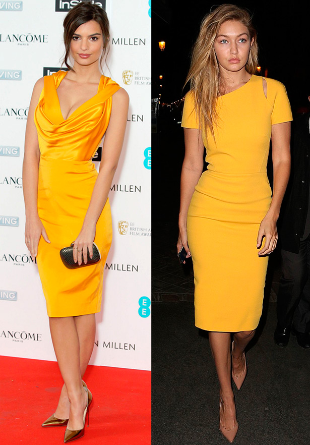 Jaune et noir - combinaison contrastée et active. Vous ne passerez pas inaperçu dedans. Une robe fourreau jaune avec un manteau noir, des chaussures, une pochette et des bijoux deviendra un ensemble indispensable pour une sortie solennelle.