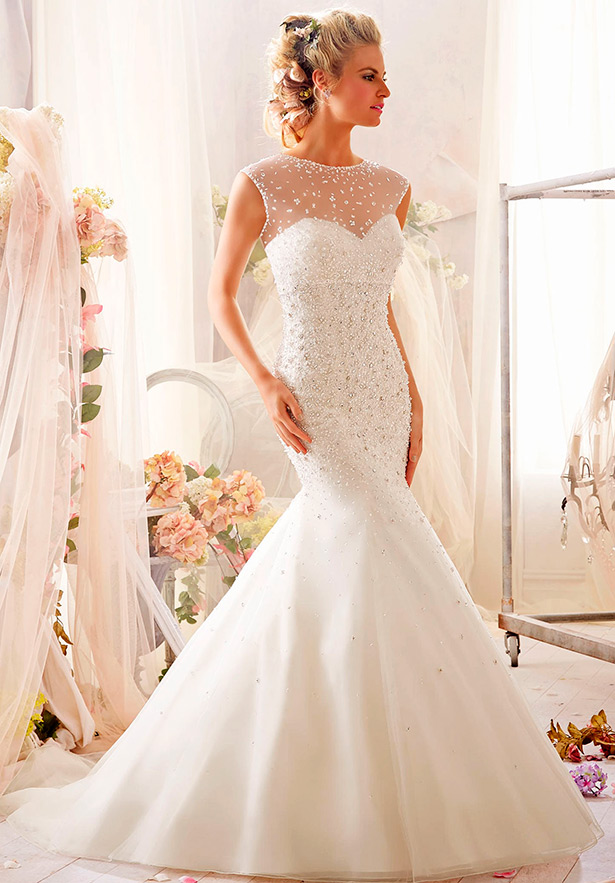 Les robes de mariée avec strass présentent de nombreux avantages par rapport aux autres modèles. C'est plus facile de porter de telles robes ramasser des bijoux et autres accessoires. Ils se marient bien avec divers diadèmes, couronnes, colliers, pochettes et ensembles de bijoux utilisant des pierres.