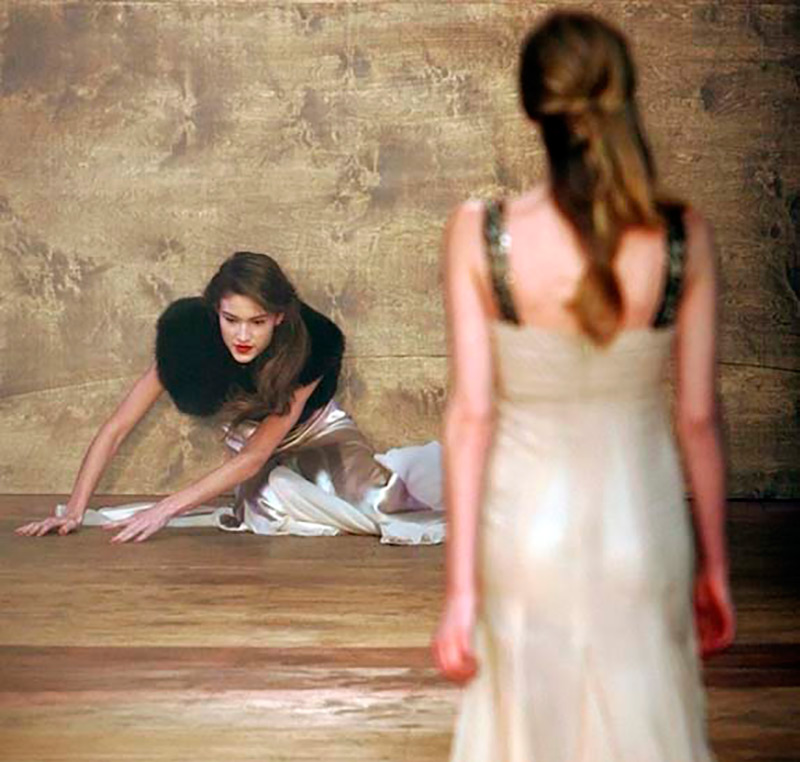 Les mannequins sur le podium, les mannequins tombent en vidéo