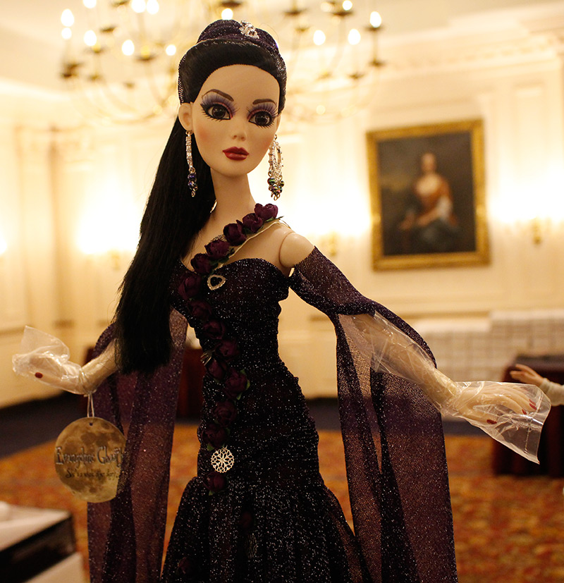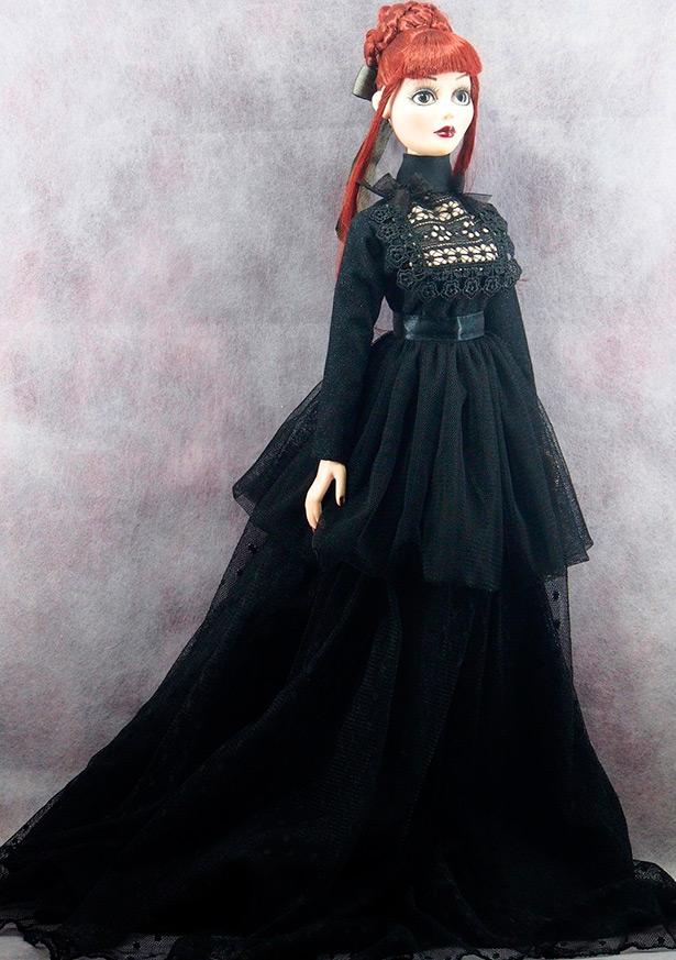 Evangeline Ghastly est une poupée très brillante dans le style du glamour gothique et de l'anime. Pour beaucoup, cette poupée semble maléfique, mais en réalité, elle est tout simplement mystérieuse et solitaire.