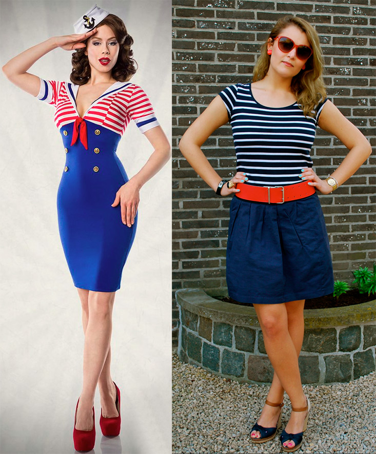 Coupe simple, rythme strict de trois couleurs attirent l'attention sur chaque détail du vêtement... Faites attention aux navires, yachts, bateaux. L'élément libre de la mer exige qu'il y ait un ordre complet à bord et rien de superflu, seulement des objets simples et utiles. Par conséquent, dans notre style nautique aussi, il doit être soumis à un ordre strict.