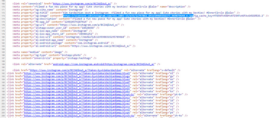 Pour ouvrir une photo en taille réelle sur un ordinateur, ouvrez la photo Instagram dans un navigateur, où vous pouvez afficher le code de la page. Après avoir ouvert la photo, vous devez afficher le code de l'élément d'image ou le code de la page entière. Ensuite, vous devez copier le lien vers le fichier image et le coller directement dans la barre d'adresse du navigateur.