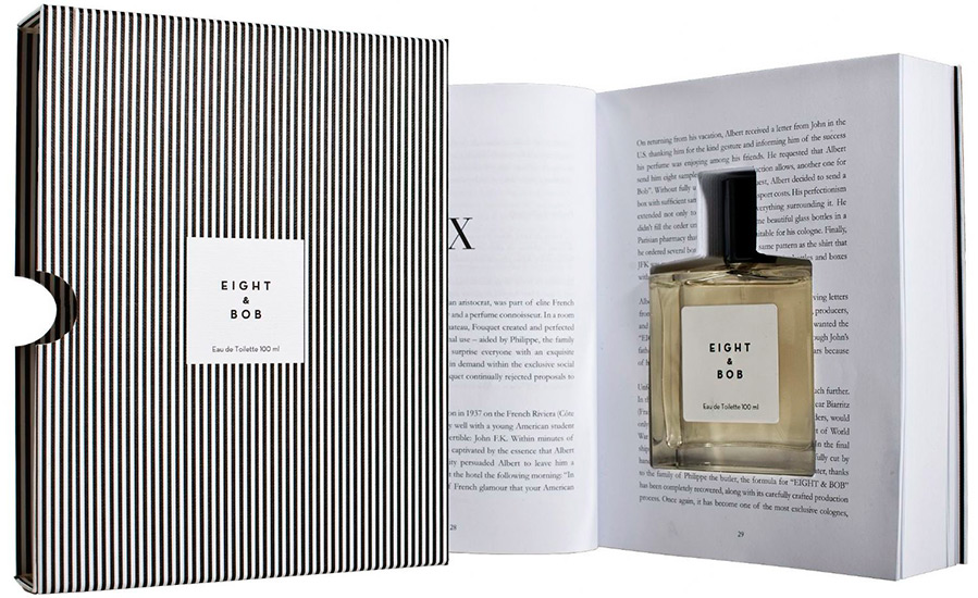 Eight & Bob du Groupe Intertrade Europe révèle des notes de gingembre, de cardamome parfumée, de fraîcheur juteuse de citron et de bergamote, au cœur de la fragrance - ciste, gaïac et bois de cèdre, en notes de fond - patchouli, bois de santal, ambre sensuel, vanille douce et Andrea sauvage.