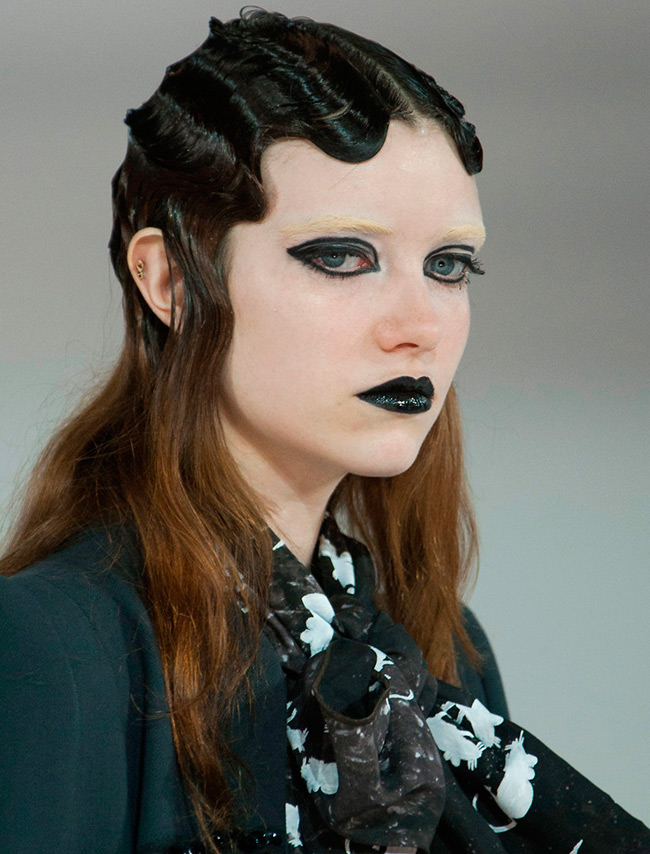 Si vous décidez également de peindre vos lèvres d'une couleur extrêmement foncée, choisissez des rouges à lèvres de couleur vin foncé qui deviennent noirs. Le contour des lèvres doit être clair et expressif, et le maquillage des yeux peut être très minimaliste. Vous pouvez même laisser vos cils non peints, afin que rien ne détourne l'attention de l'accent principal - le rouge à lèvres foncé sur les lèvres, comme principale tendance beauté de la saison.