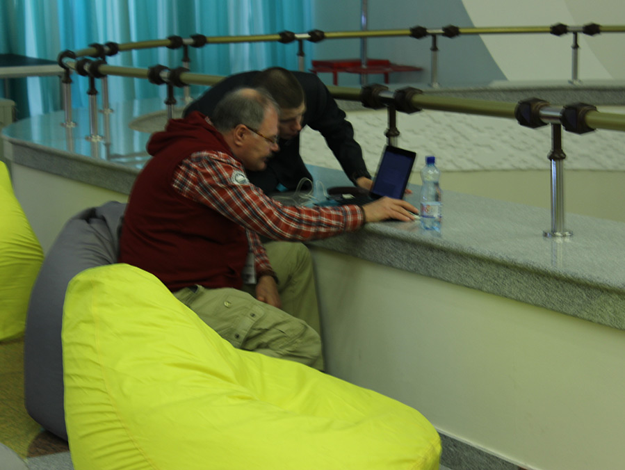 Ou des designers, discutant avec enthousiasme avec leurs clients potentiels (sur la photo, un designer de Géorgie Tinatin Magalashvili).