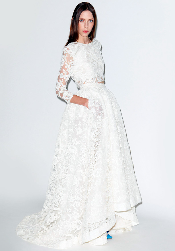 Beaucoup de gens préfèrent dénuder leurs épaules et leurs bras dans leurs robes de mariée, mais il existe également une option plus intéressante - robe à manches... Les robes de mariée en dentelle à manches vous permettront de vous démarquer du reste des mariées. Les manches peuvent être différentes - à partir des "ailes" et des "lampes de poche", qui, soit dit en passant, sont à la mode maintenant, aux manches longues, au poignet. La manche longue peut être étroite, en tissu dentelle, ou en tissu transparent différent de la dentelle principale, ou elle peut être évasée en bas.