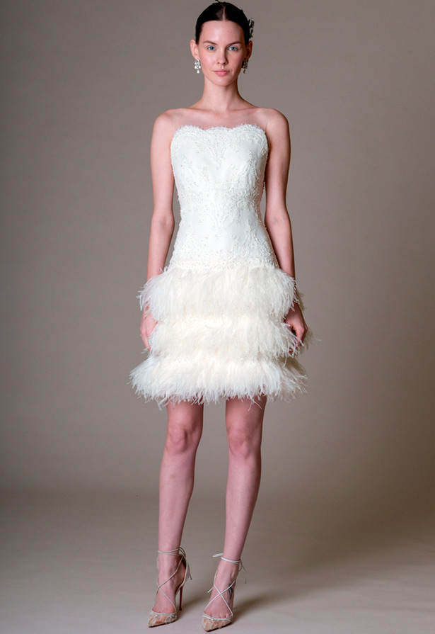 Malgré le conservatisme de la mode nuptiale, de nombreuses mariées considèrent robes courtes, qui sont particulièrement pertinents pendant la saison chaude. Il existe de nombreuses robes de mariée courtes dans les collections 2026, mais toutes ne sont pas légères et vraiment estivales. Par exemple, les robes ornées de plumes sont belles, mais très chaudes.