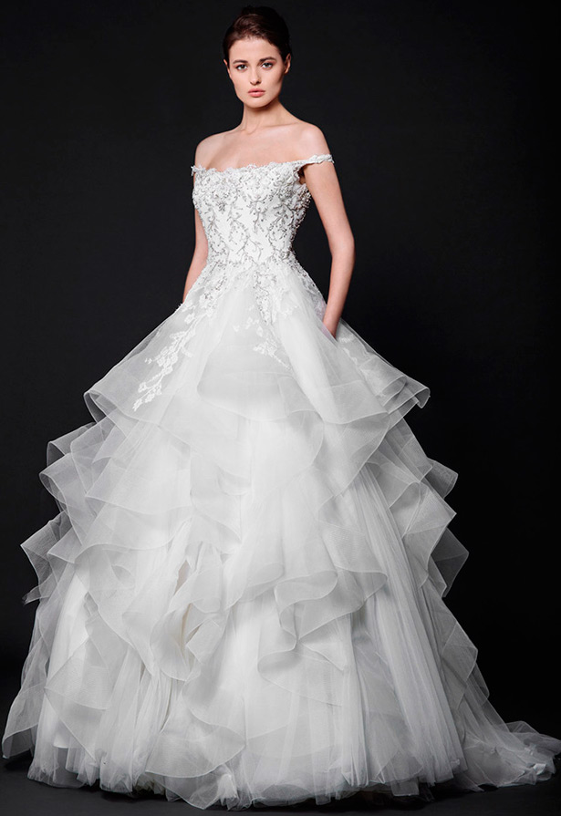 Si vous voulez vous sentir comme une vraie princesse, ravir vos invités et obtenir de magnifiques photos pour votre album de mariage et vos réseaux sociaux, achetez une tenue avec un train. Les robes de mariée sont nombreuses dans les collections 2026, avec la traîne décorée de broderies ou de dentelles, de motifs floraux et de perles scintillantes.