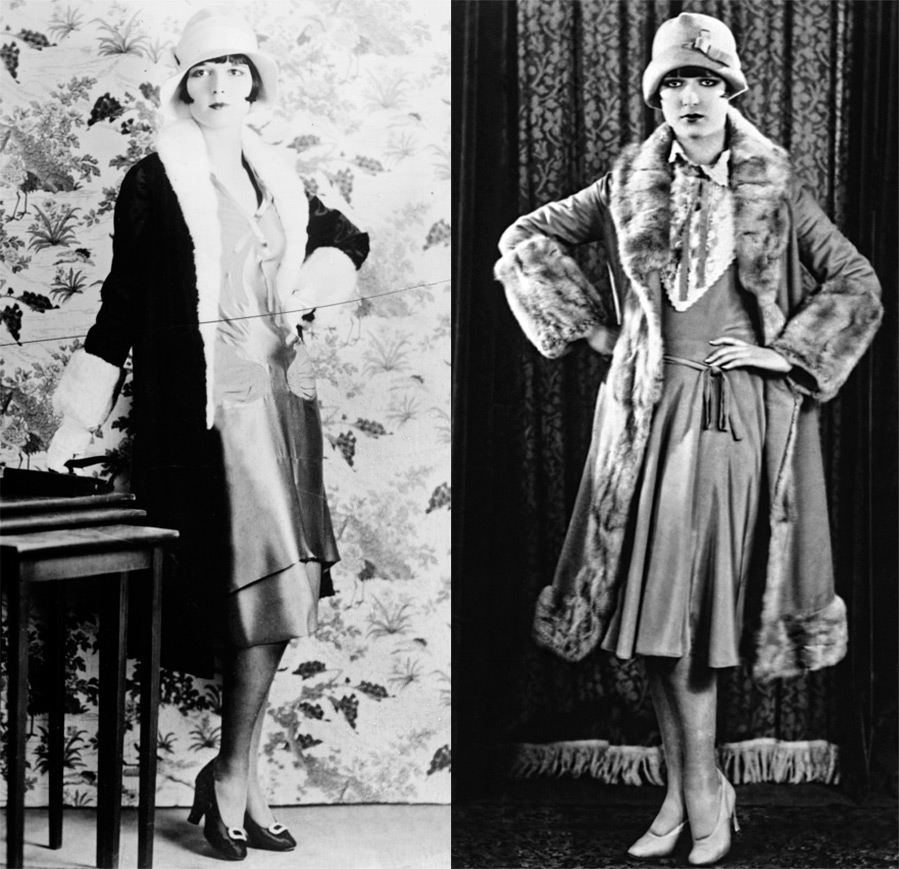 Dans les modèles des années 20, on pouvait voir des garnitures en fourrure de léopard. Les imperméables confortables pour la conduite ou pour les voyages en train sont devenus courants. Il y avait même des capes du soir, légèrement élargies en bas et garnies de fourrure de renard polaire. Les capes sont devenues populaires à la fin des années 1920. Ils avaient aussi une coupe simple, ils étaient parfois portés à la place d'un imperméable ou dans un ensemble avec un costume. Les capes remplaçaient parfois les manches dans une cape ou étaient simplement cousues sur les manches.