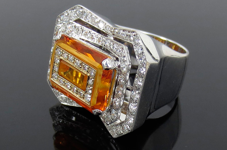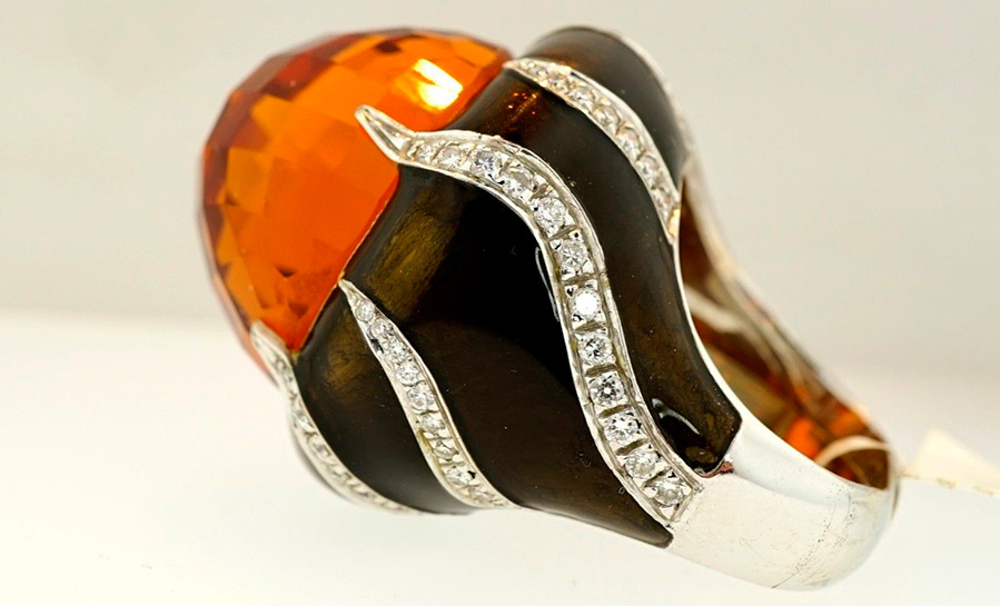 La citrine est utilisée dans les bagues, les bracelets, les boucles d'oreilles et les colliers. Les bijoux avec citrine dans un cadre doré sont particulièrement luxueux... La combinaison de métal noble et de cristal doré brillant se complète dans la décoration.L'or et la citrine scintillent et scintillent de rayons dorés, reflétés dans les facettes de la pierre et dans la surface idéale du métal noble.
