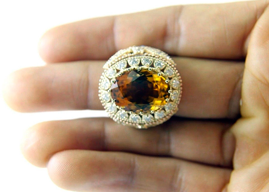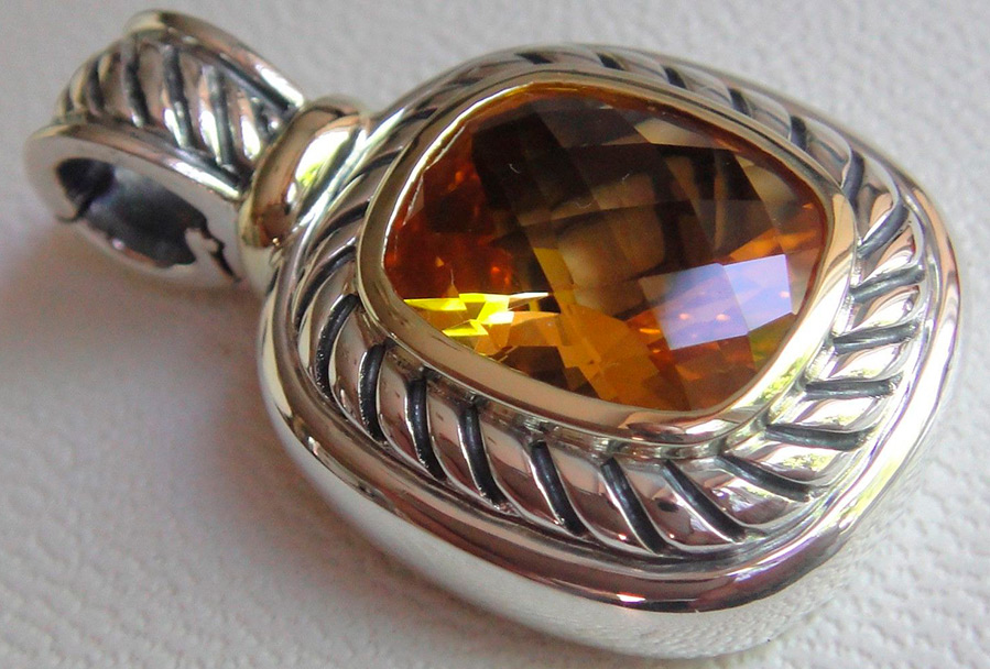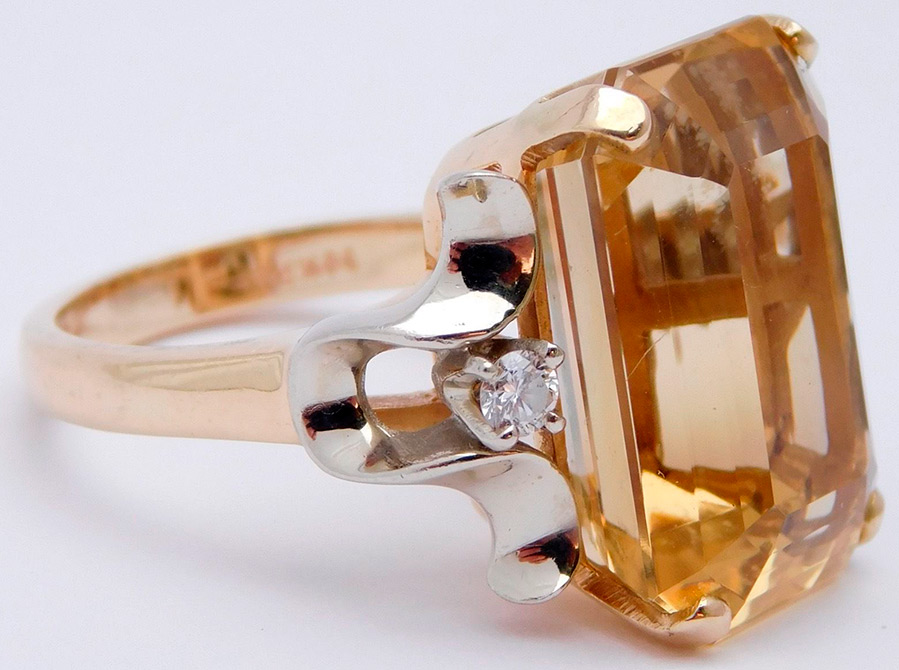 Depuis les temps anciens, les icônes, les vitraux et les vêtements sont décorés d'inserts en citrine. Les bijoux en citrine sont toujours un favori. Dans la technique de la joaillerie, le cristal n'est pas difficile à traiter, de plus, il est en parfaite harmonie avec d'autres pierres précieuses, les bijoux avec des diamants encadrés d'or sont particulièrement impressionnants.