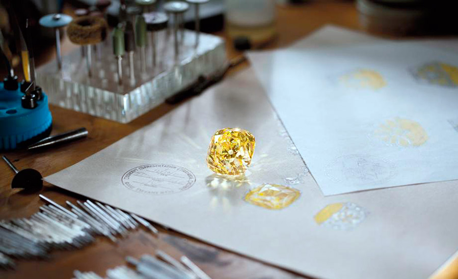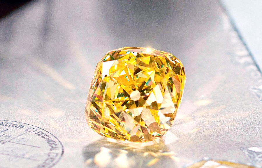 Et ce n'est pas seulement grâce au diamant miel, mais aussi à ceux qui ont travaillé dessus. Et Tiffany a toujours su choisir des bijoutiers talentueux. La taille inhabituelle, réalisée par le joaillier de la société Georg Kunz, fait scintiller le diamant aux rayons du soleil. Afin de transmettre la beauté de la pierre à la perfection, il a étudié le cristal pendant un an. Et bien que la pierre lors de la coupe ait perdu plus de 2 fois son poids - de 287 carats à 128, 54 carats, cela en valait la peine. La coupe iconique à 90 facettes exprime la beauté surnaturelle d'un diamant.