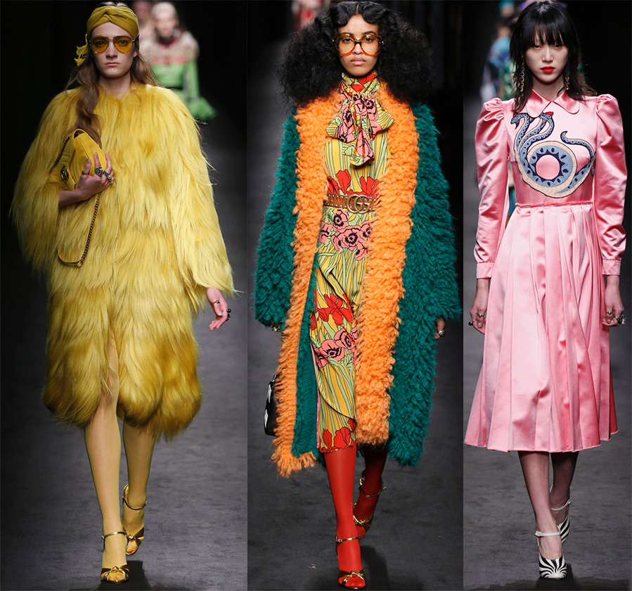 Gucci ne se limite pas au noir, au gris et au blanc, ils ont une véritable célébration des couleurs vives.