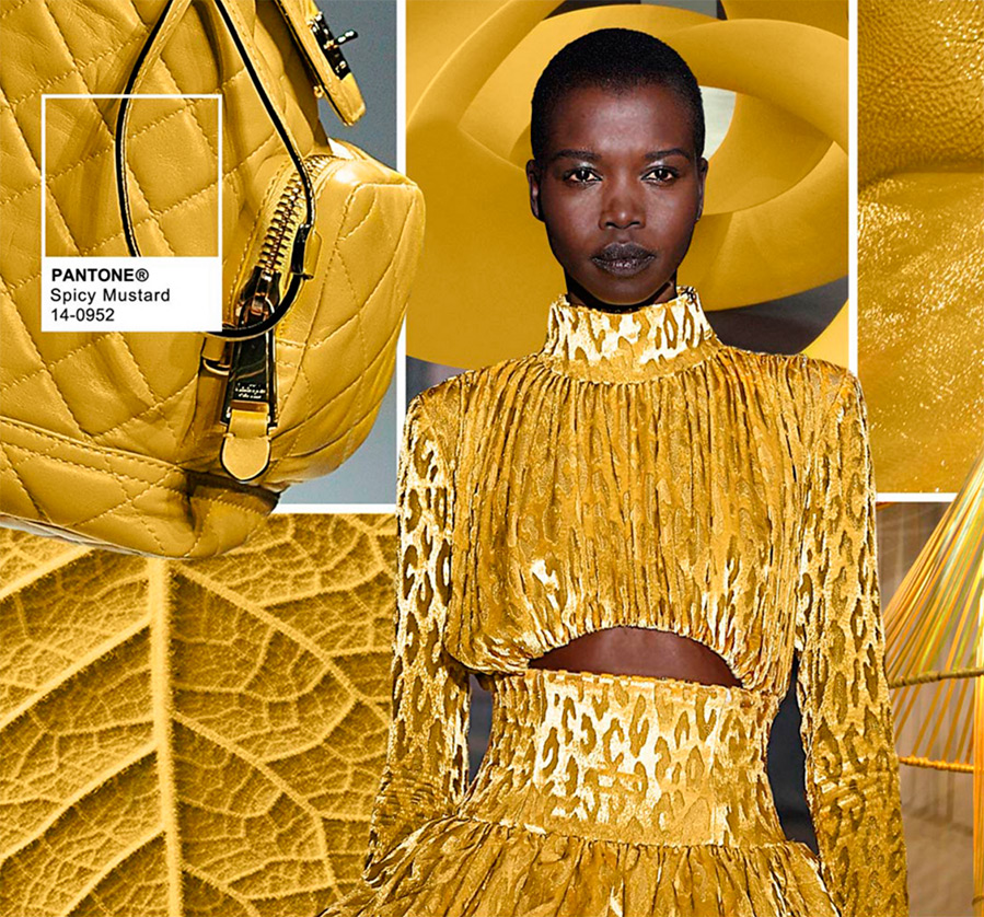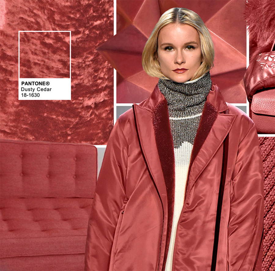 Pantone propose des tons sourds, mais il existe également des couleurs vives comme le jaune, le rouge et le fuchsia. Selon Pantone, les couleurs tendance automne-hiver 2025-2026 comprennent les couleurs suivantes : Riverside (bleu), Airy Blue (bleu), Sharkskin (gris), Aurora Red (rouge vif), Warm Taupe "(Beige brown)" Dusty Cedar "(rouge brique atténué)," Lush Meadow "(vert vif)," Spicy Mustard "(jaune moutarde)," Potter's Clay "(marron) et" Bodacious "