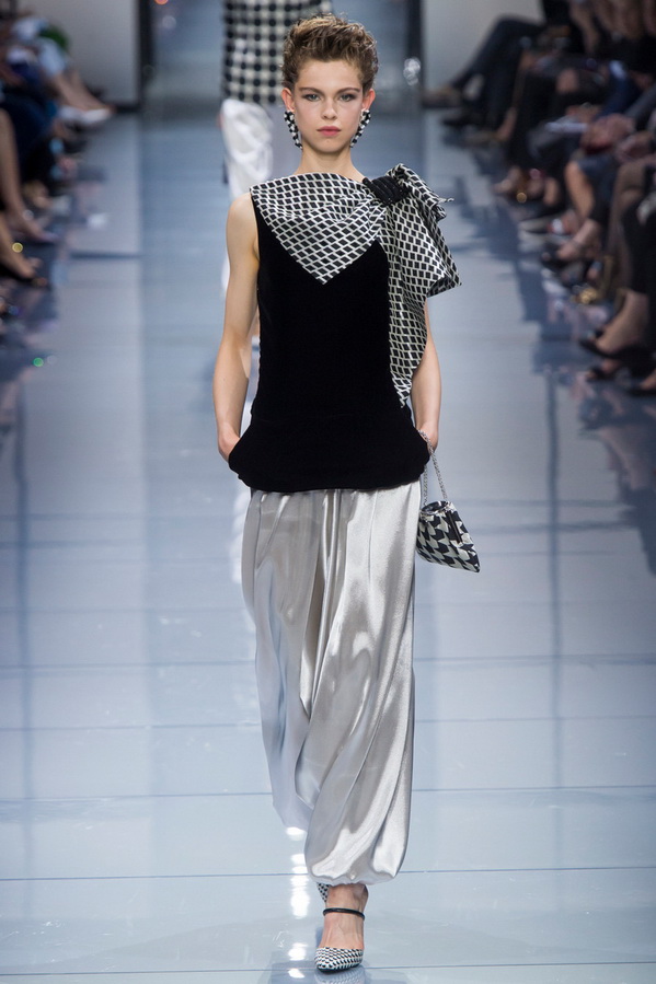 La nouvelle collection Armani Priv ? L'automne-hiver 2025-2026 présente une combinaison d'imprimés intemporels - pattes d'oie, gros pois, losanges et carrés qui se multiplient dans des silhouettes strictes et parfaites. Dans le même temps, la palette de toute la collection est très stricte et se compose des nuances préférées du créateur - noir, blanc, argent et nuances de bleu, grâce auxquelles toutes les images sont très harmonieuses.