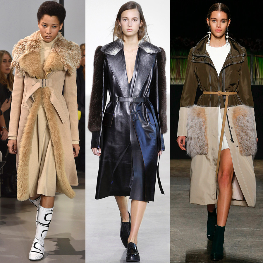Un manteau en tweed, cachemire, fourrure ou une combinaison de différentes matières vous tiendra chaud. Cependant, arrêtez vos yeux sur les produits en cuir. Par exemple, dans les collections parisiennes, les créateurs utilisent souvent du cuir verni, et dans les collections de Derek Lam, Gareth Pugh ou Calvin Klein, un manteau en cuir a fière allure avec un col moelleux.