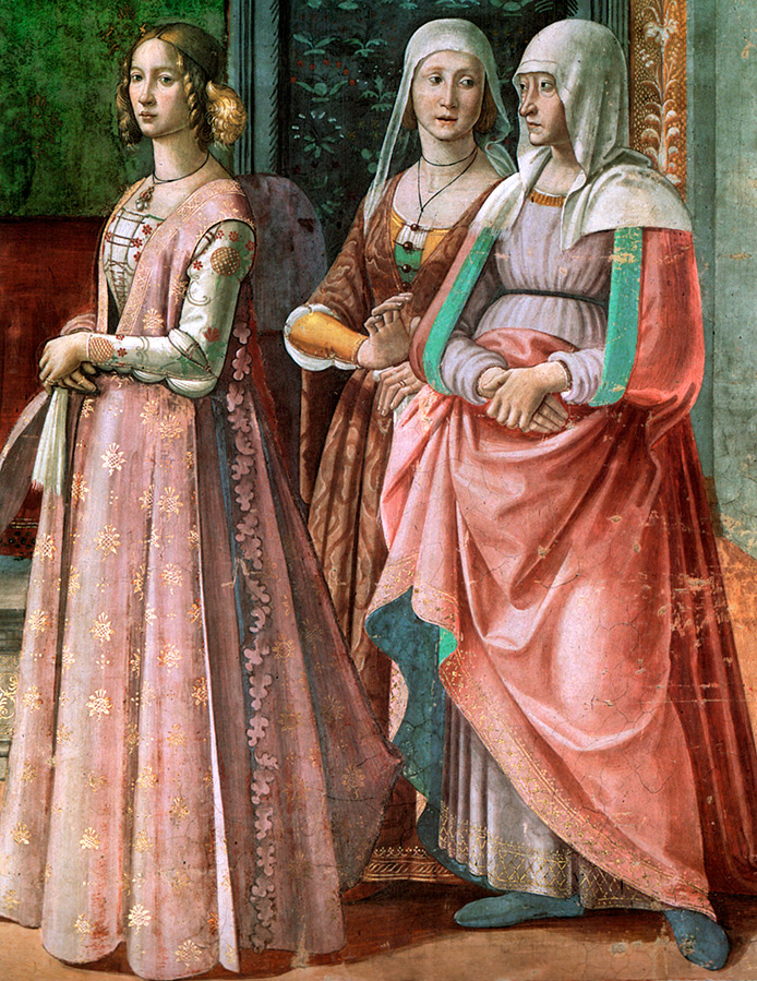 Dans la mode féminine du style gothique, la silhouette en forme de S du costume était considérée comme idéale. La partie supérieure de la robe a été visuellement raccourcie en raison de la taille haute et du décolleté bas.