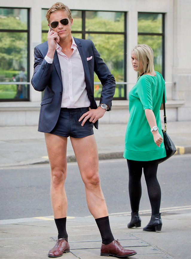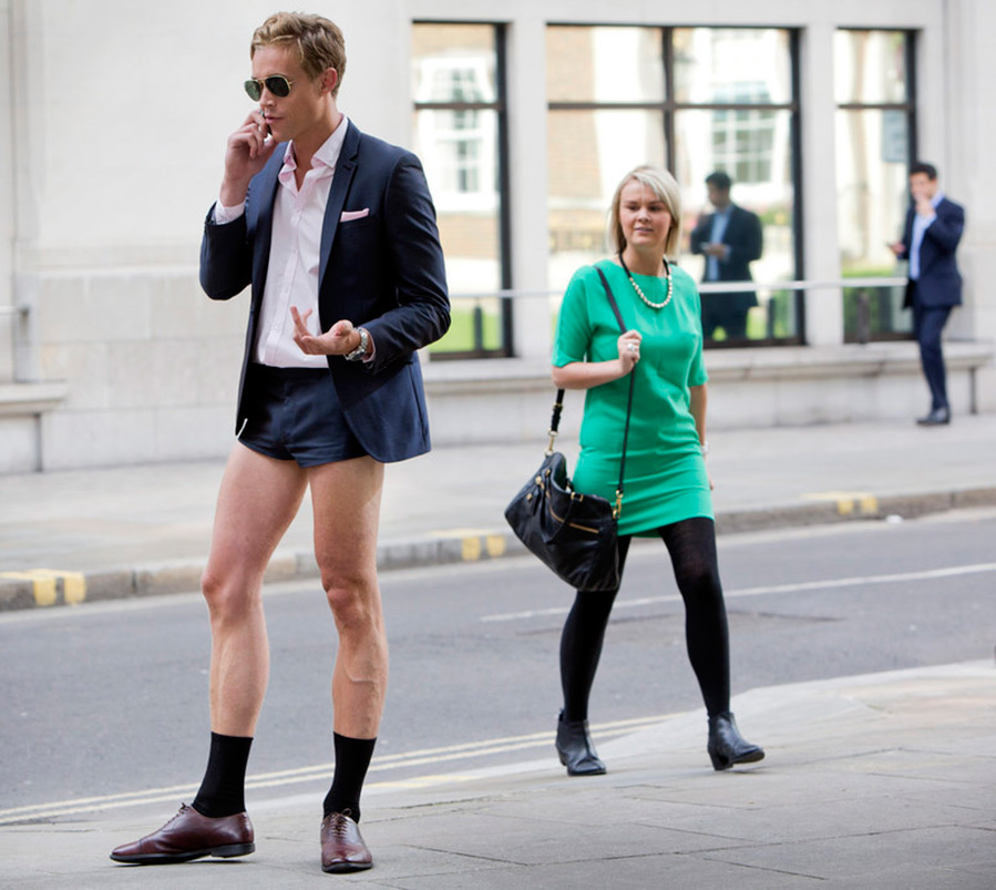 De plus, l'automne débarrassera les rues des villes des hommes moches en short, t-shirt délavé et tongs. Les hommes ont longtemps vécu, aussi facilement et commodément, sans s'embarrasser de soucis style et beauté... Cela est particulièrement évident dans la chaleur estivale, lorsque les hommes rampent dans les rues des villes en short, parfois en maillot de bain.