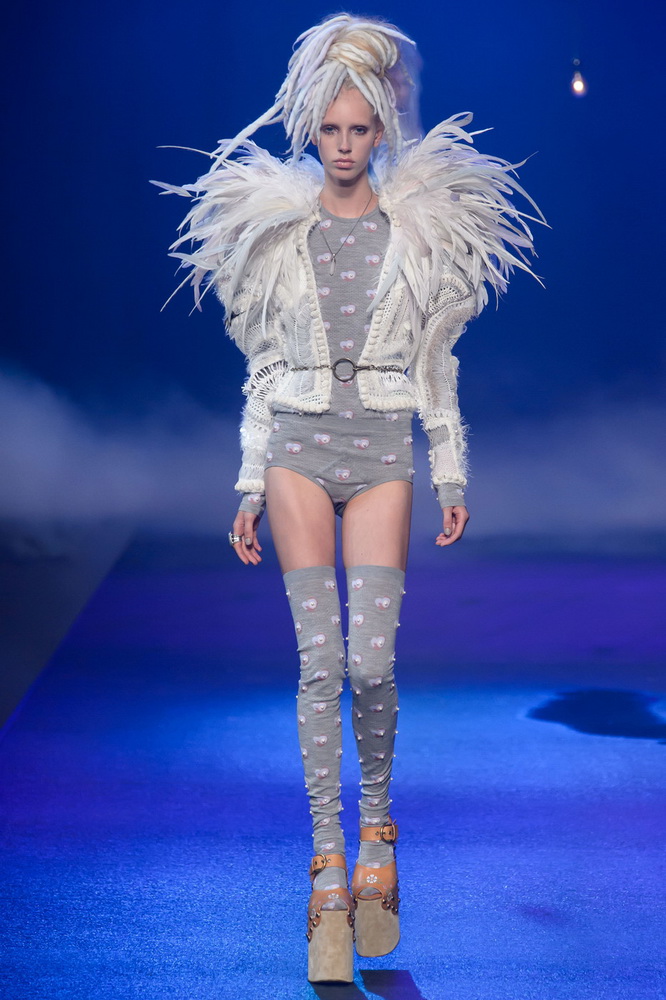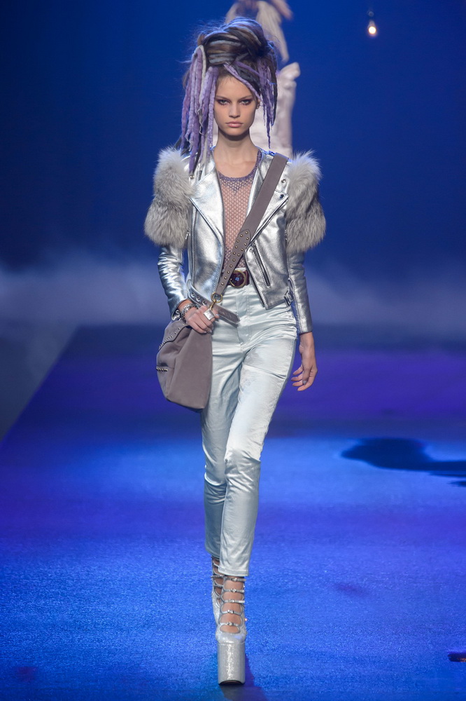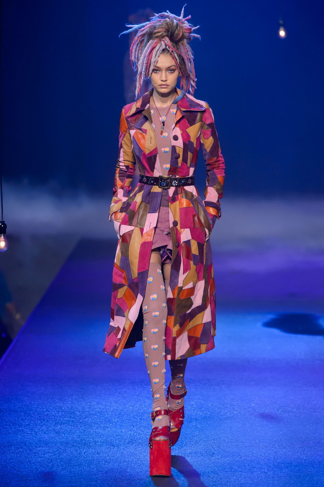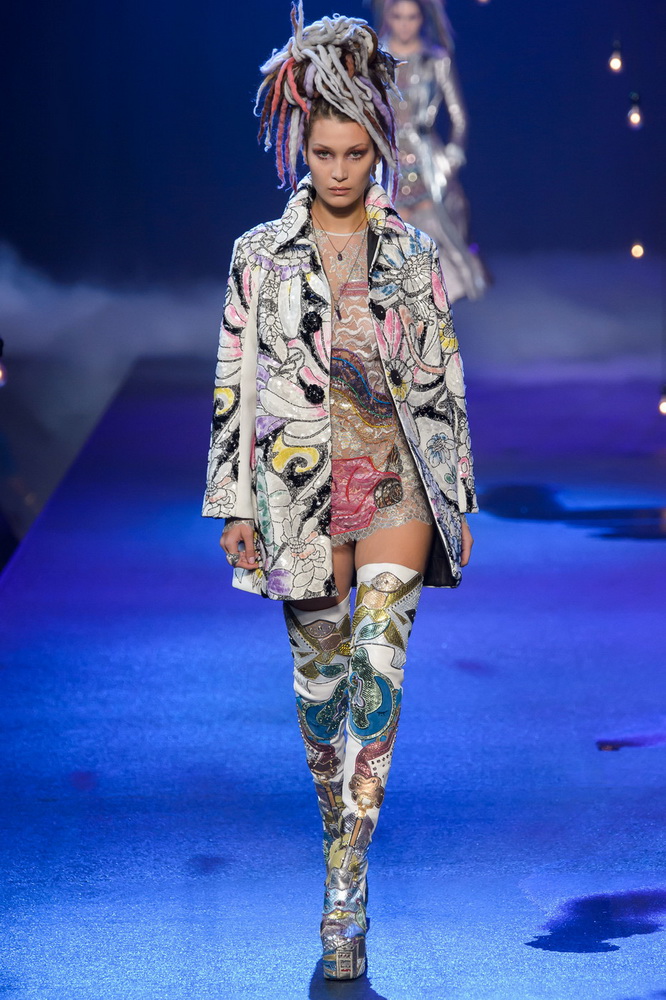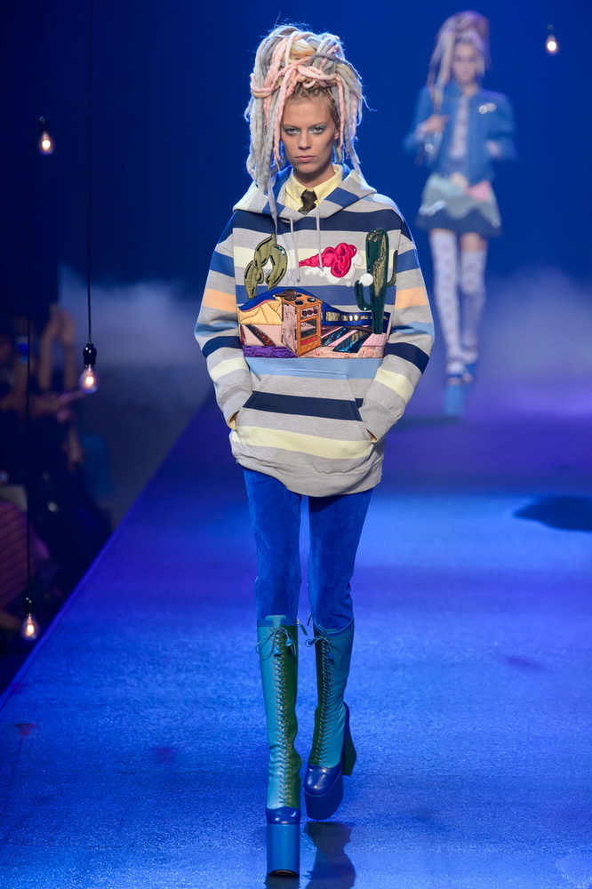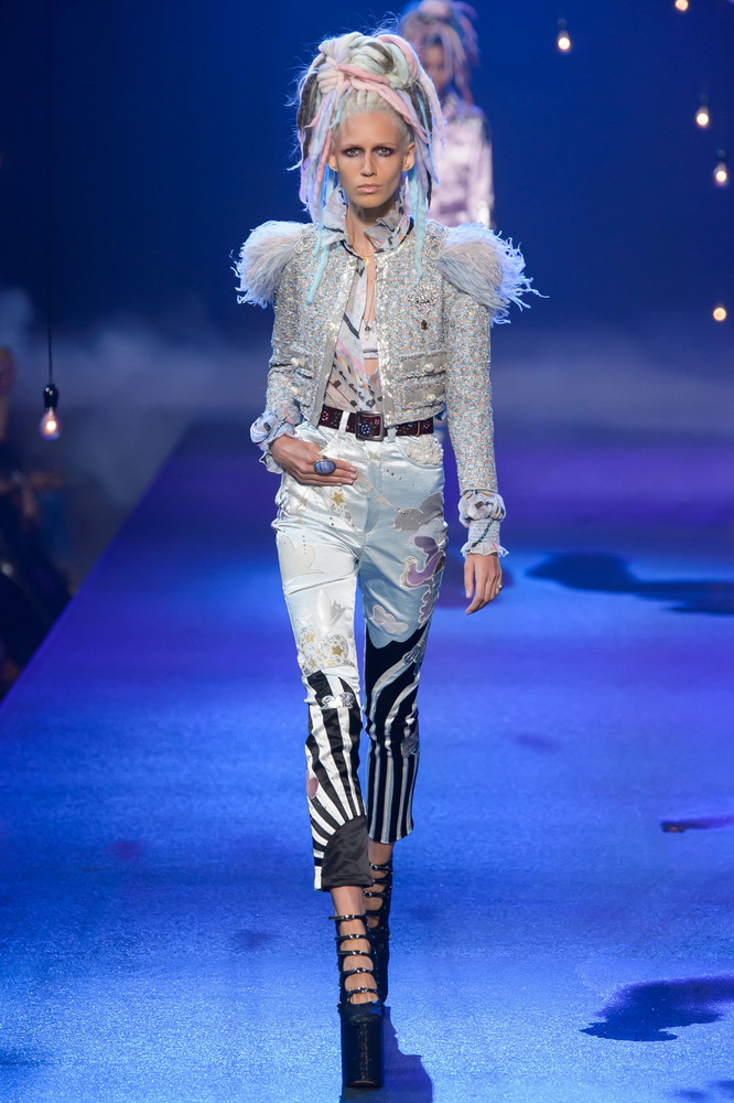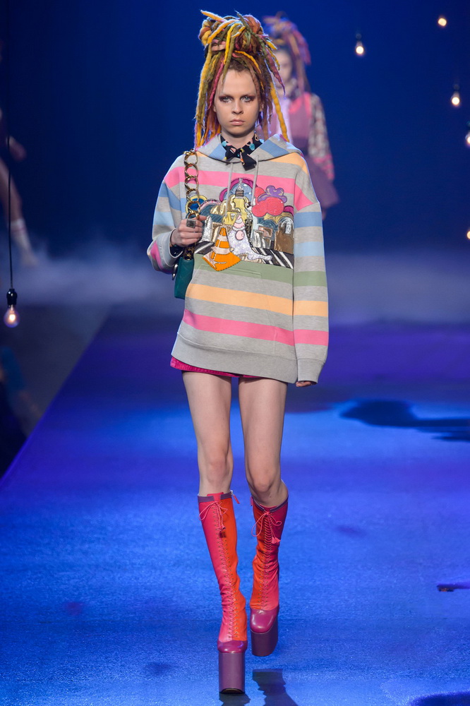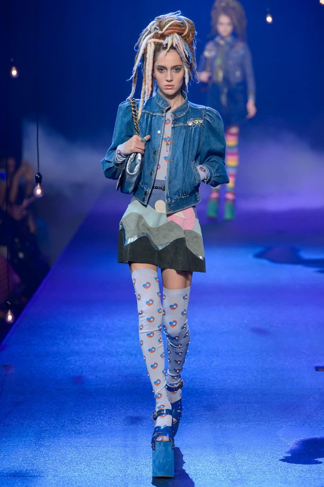 La nouvelle collection Marc Jacobs est très riche et luxueuse, elle a tout - des tenues pour filles informelles, de style militaire, des vêtements pour les fêtes et les clubs. Les mannequins ont défilé sur d'énormes plates-formes, en short et en haut, des vestes en tissus brillants et brillants avec des imprimés intéressants. Partant de teintes pastel délicates et amenant progressivement la couleur des tenues au camouflage et aux couleurs acidulées vives, la créatrice a compilé une collection entièrement de mini silhouettes.