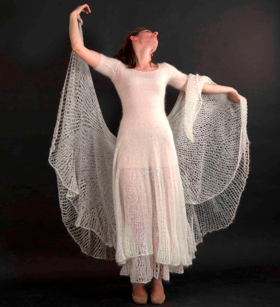 Une robe de mariée en tricot n'a pas besoin d'être une robe, vous pouvez commander une jupe en tricot et un pull fait du même fil. Si vous choisissez un modèle de tricot approprié et que le travail sera fait avec une haute qualité, vous pouvez non seulement faire une délicieuse impression sur les invités, mais aussi continuer à porter ces articles tricotés après le mariage, individuellement ou ensemble, mais plus dans le image d'une mariée, mais par exemple, Reine des Neiges ou Fille des neiges.