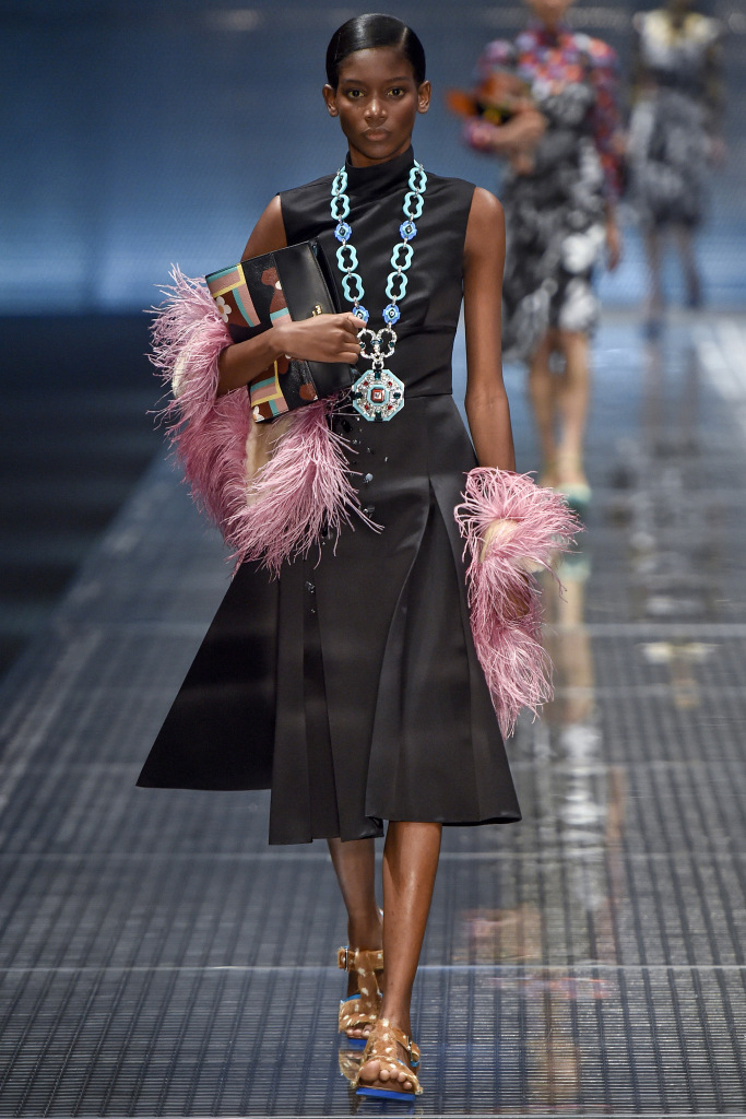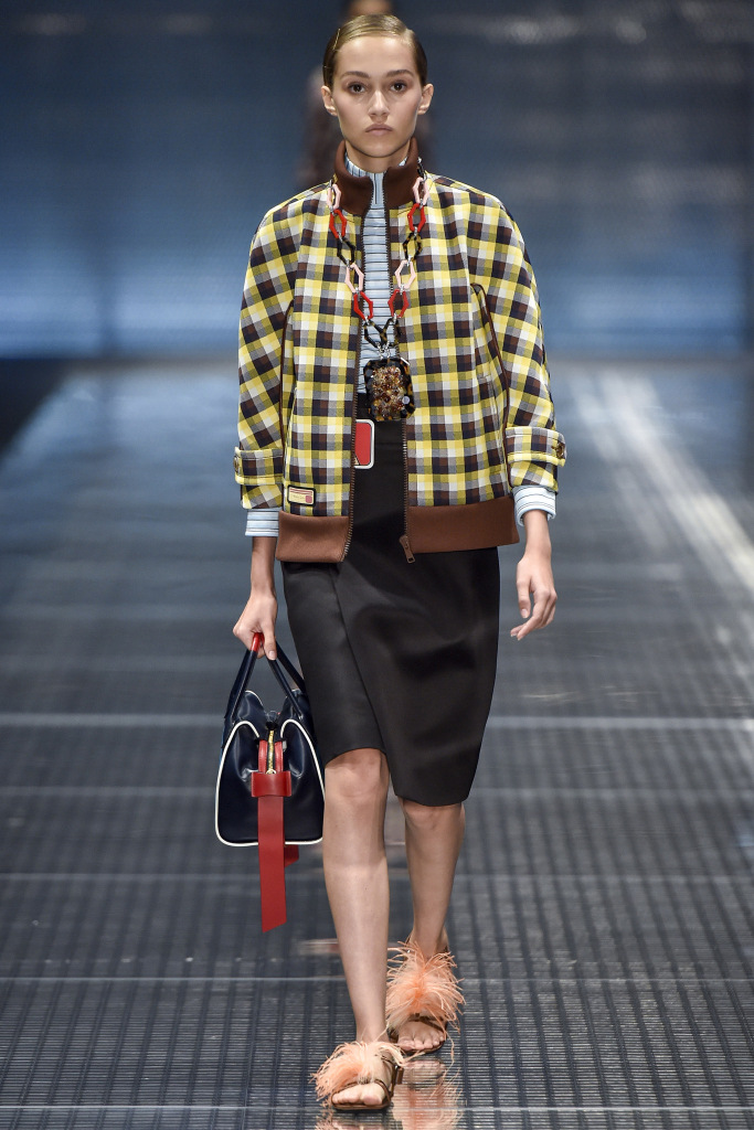 Comme décorations sur les modèles, vous pouvez voir bijoux massifs - des chaînes avec des pendentifs, qui dans certains looks sont en bonne harmonie avec les imprimés sur les vêtements. Et s'il fera froid au printemps et à l'été 2026, Prada suggère de porter un gilet et une veste en cage ou une veste en cuir brillant, qu'il vaut mieux ne pas attacher, mais serrer avec une ceinture.
