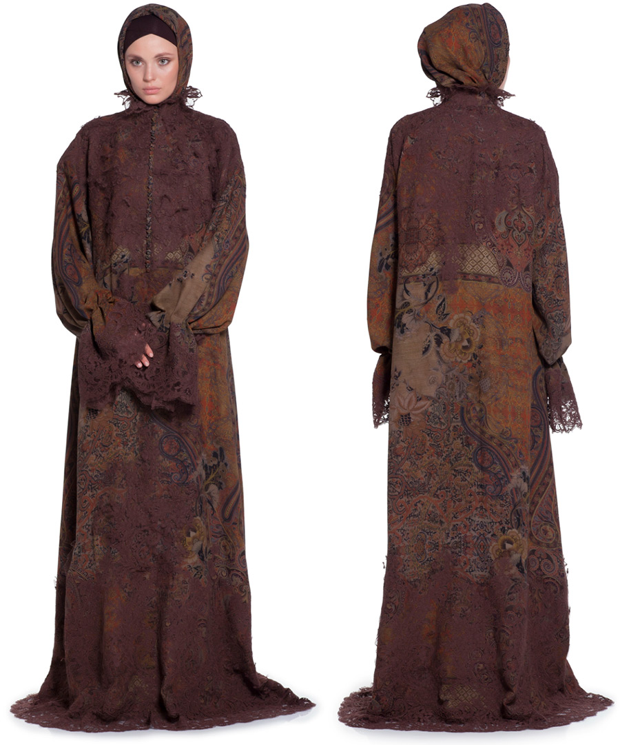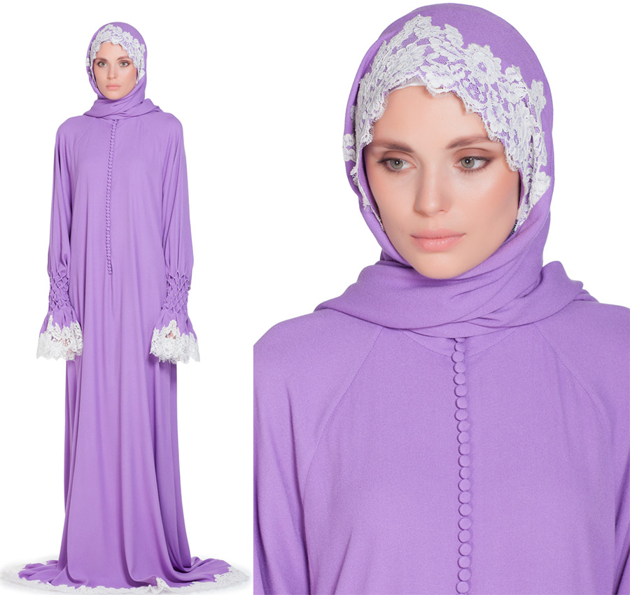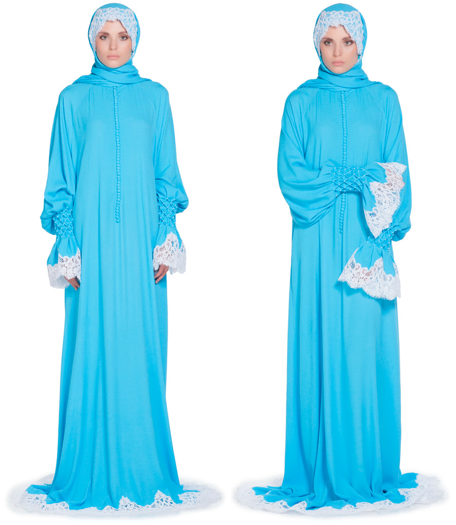 Le modèle de base d'une robe de prière de YAND peut être réalisé dans n'importe quelle couleur selon les mesures du client. Pour les filles qui veulent une robe spéciale pour la prière, la marque crée des robes selon des modèles individuels.