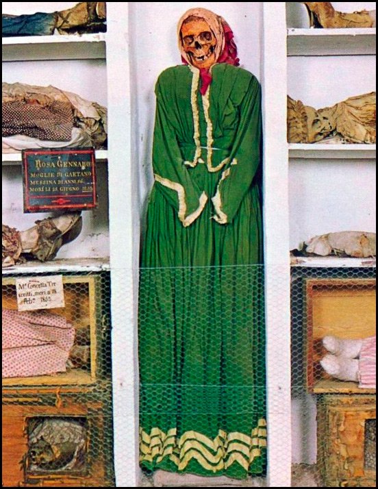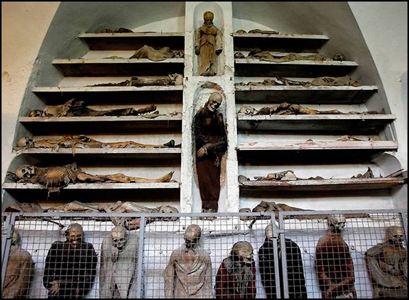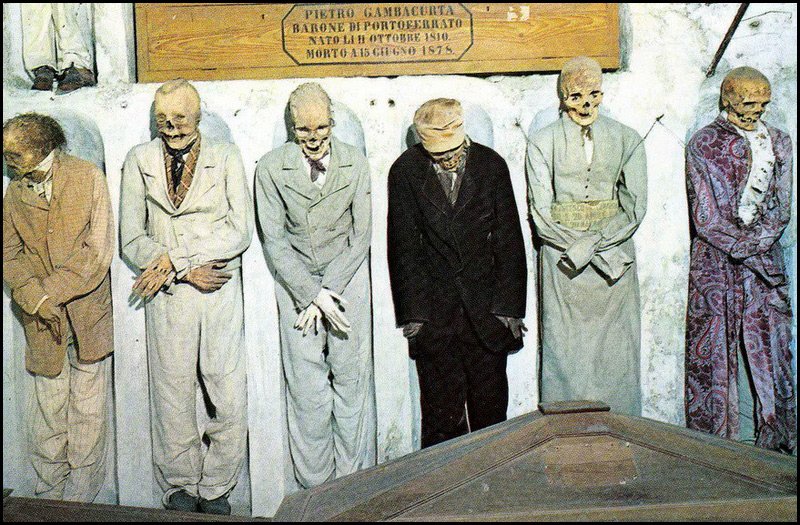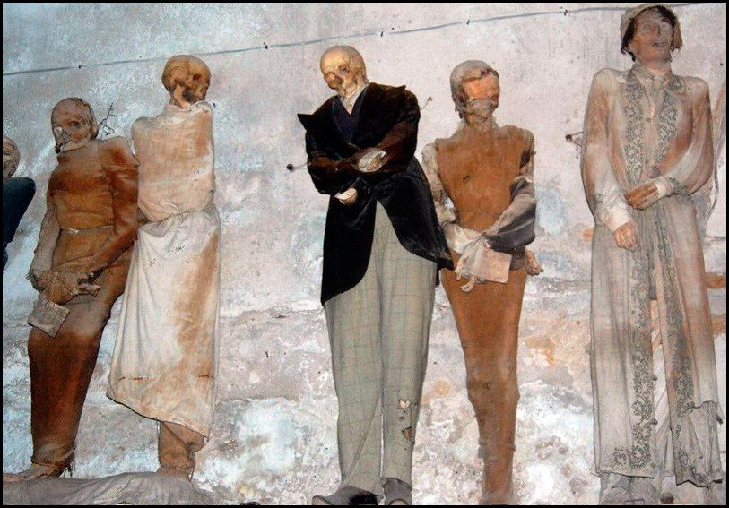 La série de photographies s'appelle le Musée des morts à Palerme. Il est intéressant ici que les vêtements soient conservés directement sur leurs propriétaires. Les vêtements qu'ils portaient au cours de leur vie.