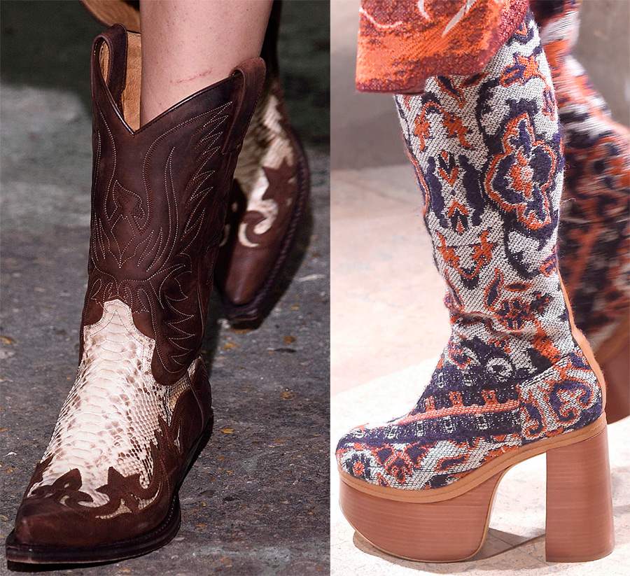 paillettes d'or et d'argent sur le podium vous fait penser au besoin de bottes métalliques dans votre garde-robe, car elles ont l'air incroyable. Le laçage et les boucles sont pertinents, et enfin, les bottes en velours, qui ne sont définitivement que pour le temps sec.