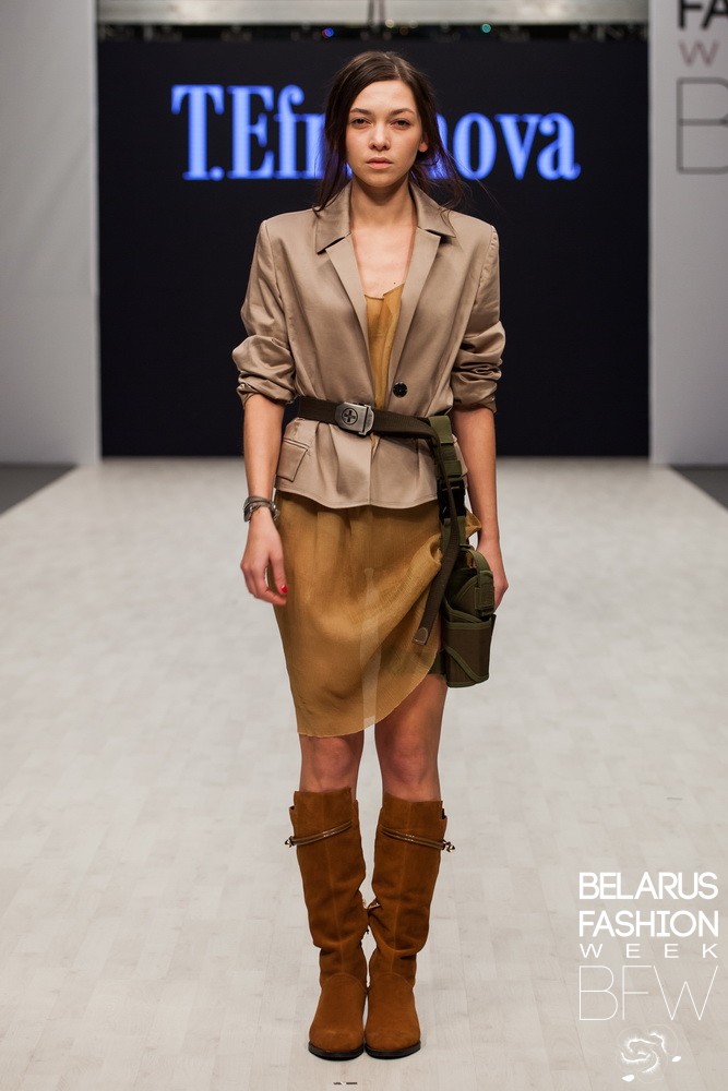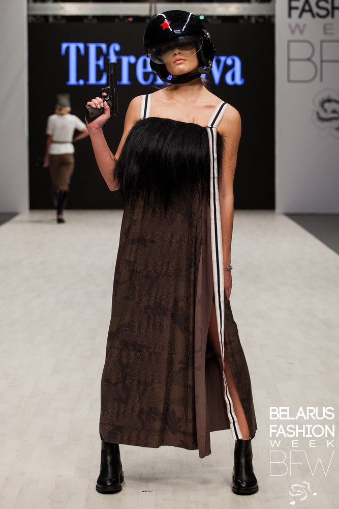 « Elle est sortie complètement armée ! Fille confiante. Ce monde est pour elle ! Elle est invincible, malgré sa fragilité et sa vulnérabilité "- c'est ainsi que Tatyana Efremova a déclaré à propos de sa collection printemps-été et a présenté l'image d'une fille guerrière. Dans le même temps, une telle fille reste toujours féminine, ce qui est souligné par des tissus et des robes légers, tandis que les détails des tenues sont réalisés dans le style des uniformes militaires de différentes époques.