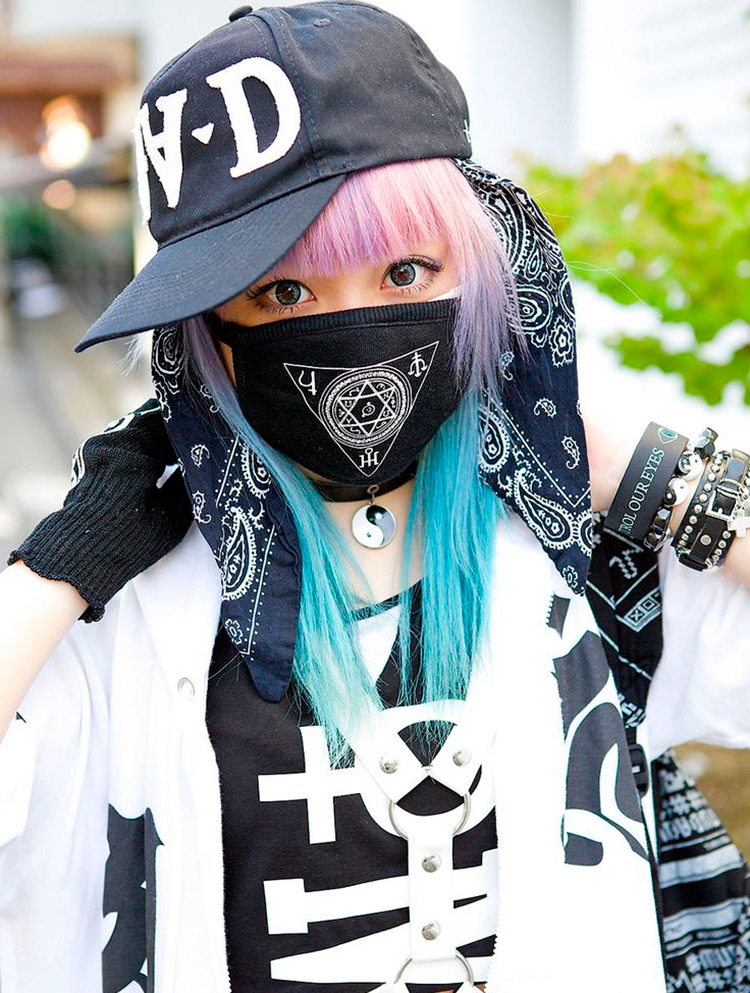 Les masques de protection étaient à l'origine portés pendant la saison froide pour se protéger du rhume et de la grippe. Pendant la saison chaude, les masques étaient protégés des allergènes florissants, puis ces masques sont devenus une partie de certains styles et sous-cultures. Progressivement, le masque devient non seulement un moyen de protection, mais un certain élément de l'image.