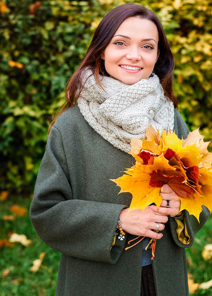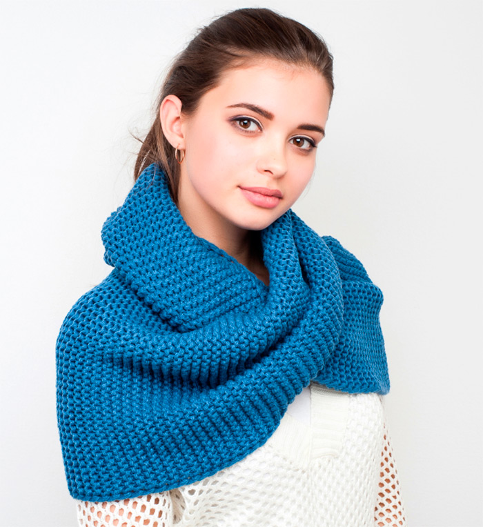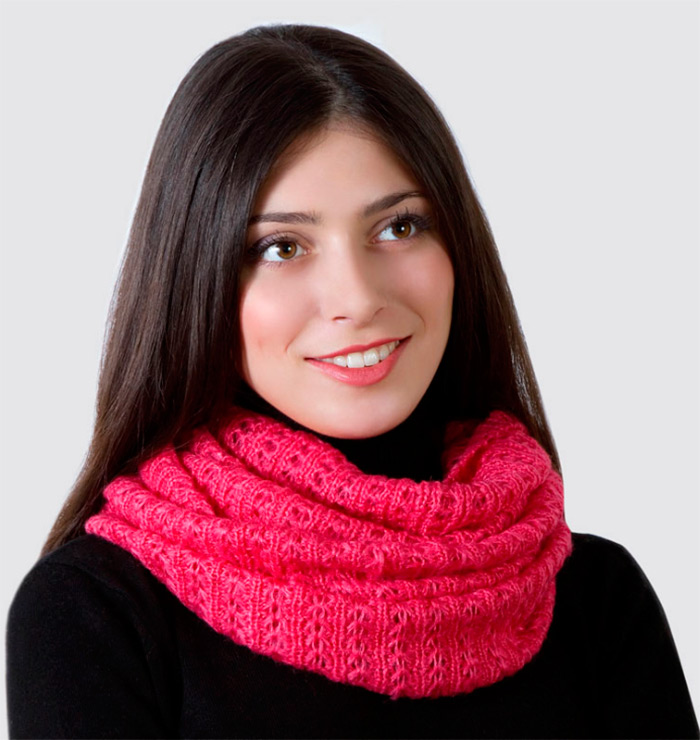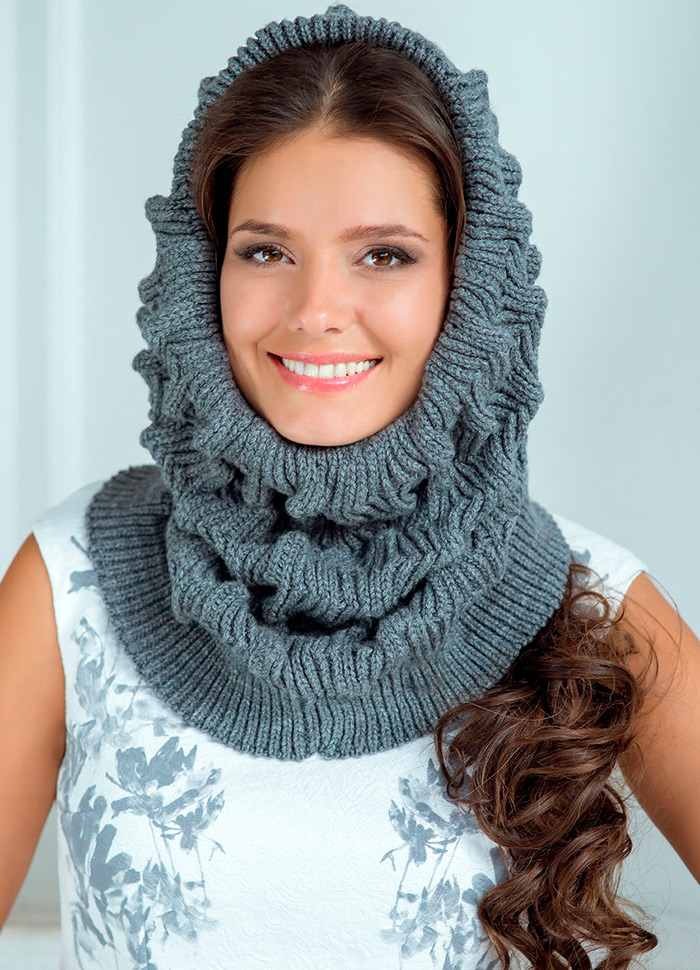 Une écharpe snood protège en même temps des rafales de vent froid et se combine avec succès avec des vêtements d'extérieur. Jeté sur un manteau, il apportera douceur et élégance, et drapé sur une veste, enthousiasme et mystère. Même