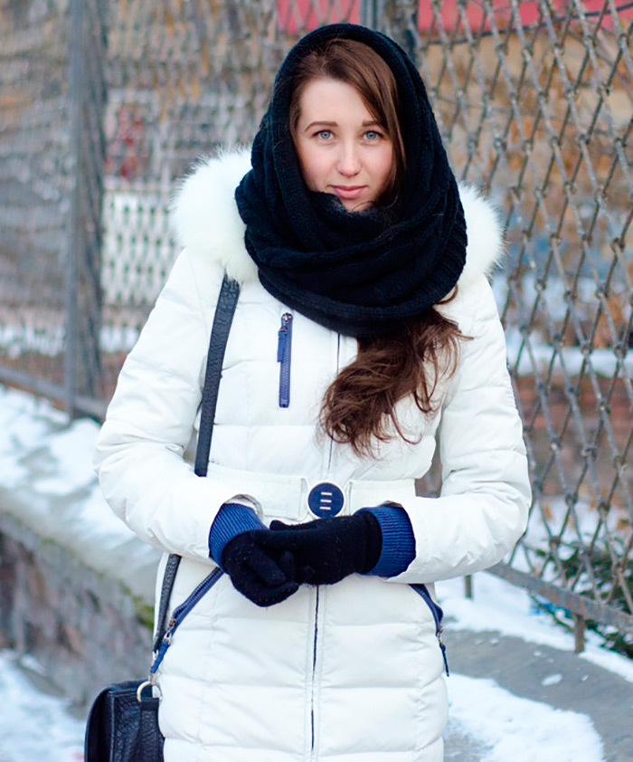 Le snood écharpe est un magnifique accessoire pour l'hiver russe, il vous réchauffera et vous ravira avec des photos d'hiver réussies. Allez à une séance photo par temps clair et glacial et assurez-vous d'obtenir de superbes photos. Un visage éclatant de santé, un regard radieux, un léger rougissement et un charmant sourire aux dents blanches - tout cela ne peut qu'attirer les regards admiratifs !