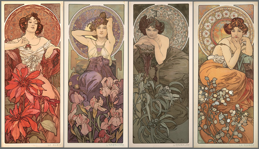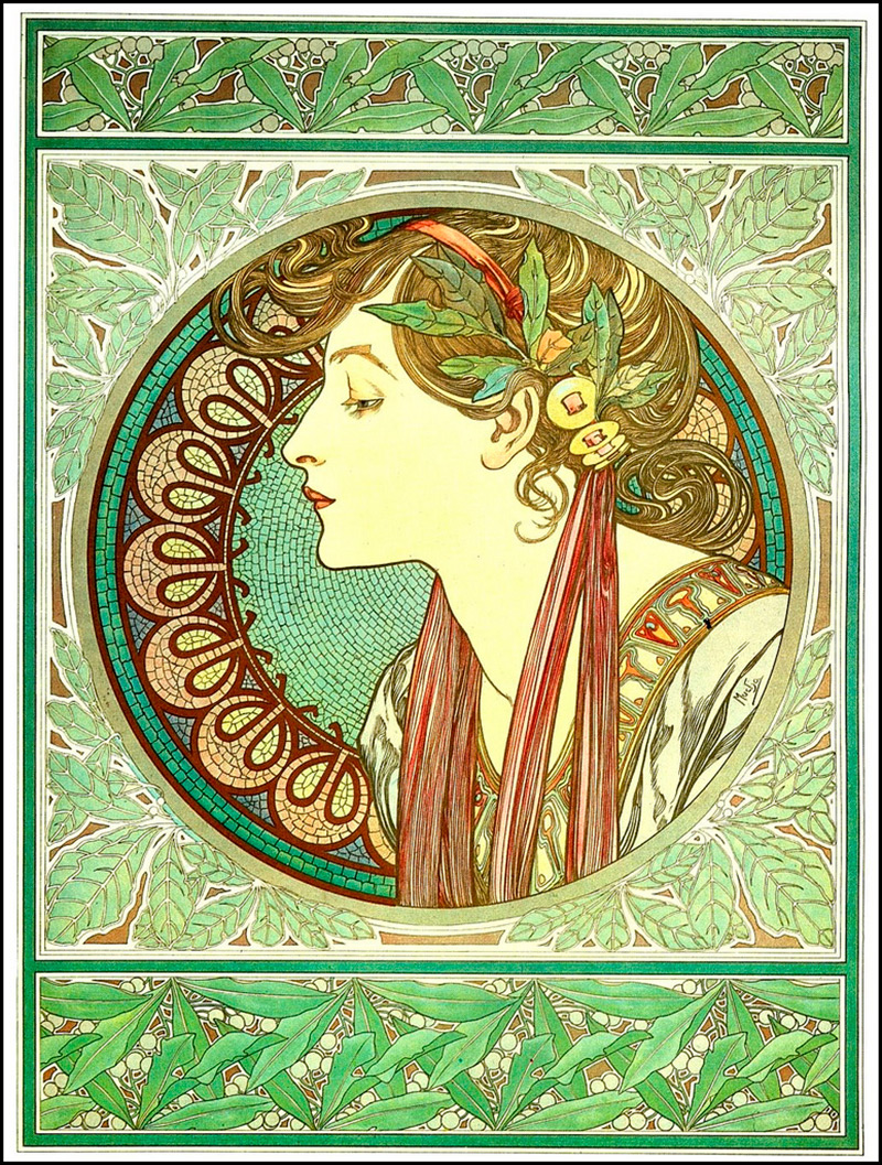 Mucha a exprimé le style Art Nouveau sous des formes claires, distinctes et expressives qui sont facilement mémorisables même par un spectateur inexpérimenté. La pureté de l'expression du style fait de l'œuvre d'Alphonse Mucha un phénomène unique dans l'histoire