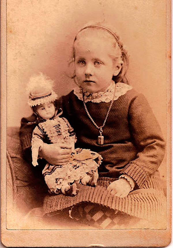 Poupées anciennes sur des photos d'époque