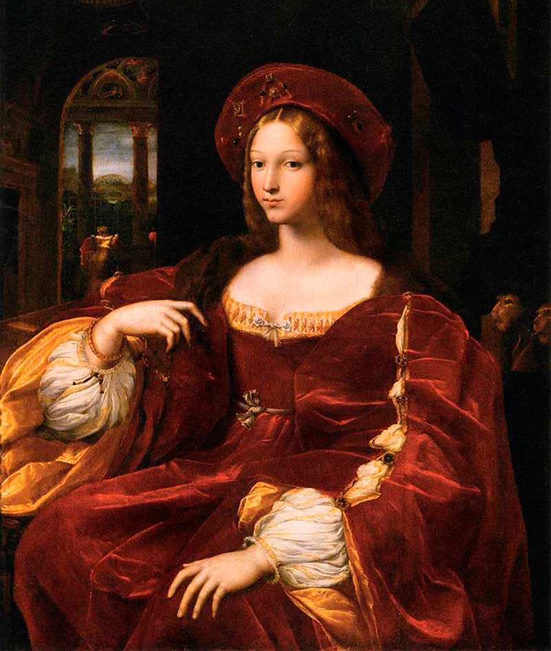 Pendant la Renaissance en Italie, les femmes étaient considérées comme belles avec un long cou et un front haut. Les femmes encore, comme au Moyen Âge, pour souligner la hauteur du front, rasaient les cheveux au-dessus du front à l'épaisseur de deux doigts. Sourcils et cils non teints. Mais le parfum était utilisé en grande quantité. Ils ont rougi les joues, peint les lèvres.