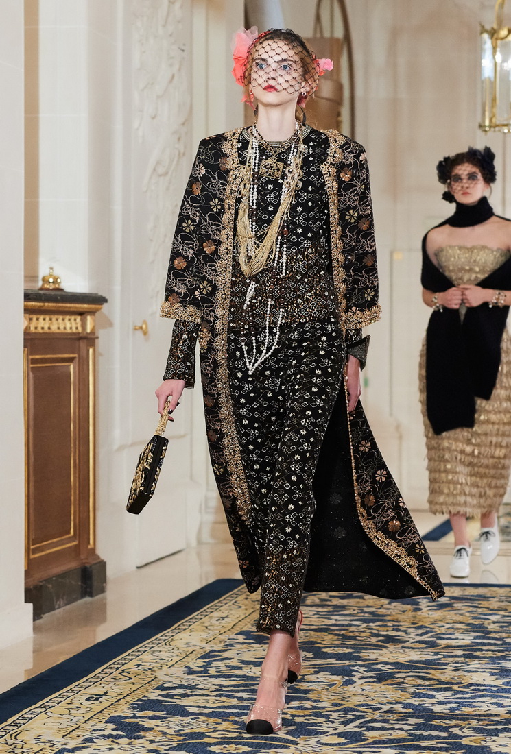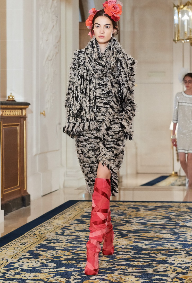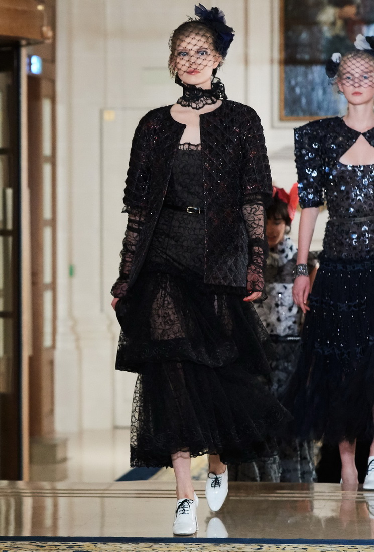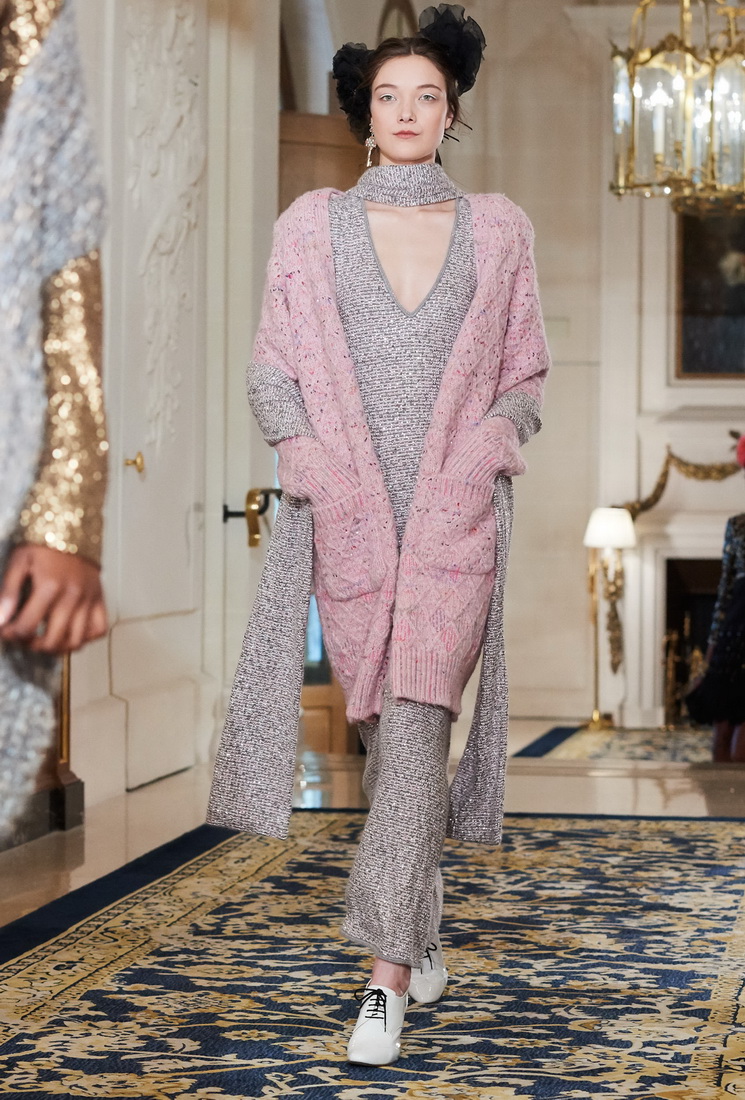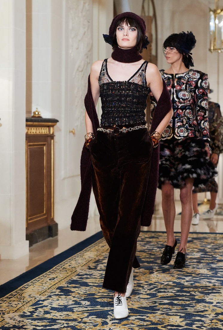 Malgré son âge considérable, Karl Lagerfeld ne perd pas sa capacité de travail et ravit les fans de Chanel avec de nouveaux looks. La collection comprend des vestes Chanel mises à jour, complétées par des jupes midi, des culottes ou des pantalons, des robes argentées claires avec des cardigans et des foulards doux, des robes de soirée avec des franges, des strass, des fleurs et de la fourrure.