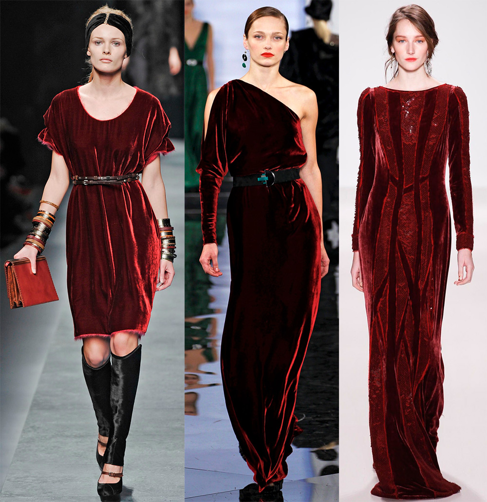 Parmi les nombreuses nuances, il est préférable de choisir des robes en velours rouge ou bordeaux. Une robe de couleur bordeaux et de la couleur d'un feu de Moscou aura fière allure. Le velours pendant la saison froide de 2026 n'est pas seulement un tissu à la mode pour les robes, tous les articles de la garde-robe féminine sont en velours - jupes, vestes, pantalons, costumes, bottines, bottes et autres ...