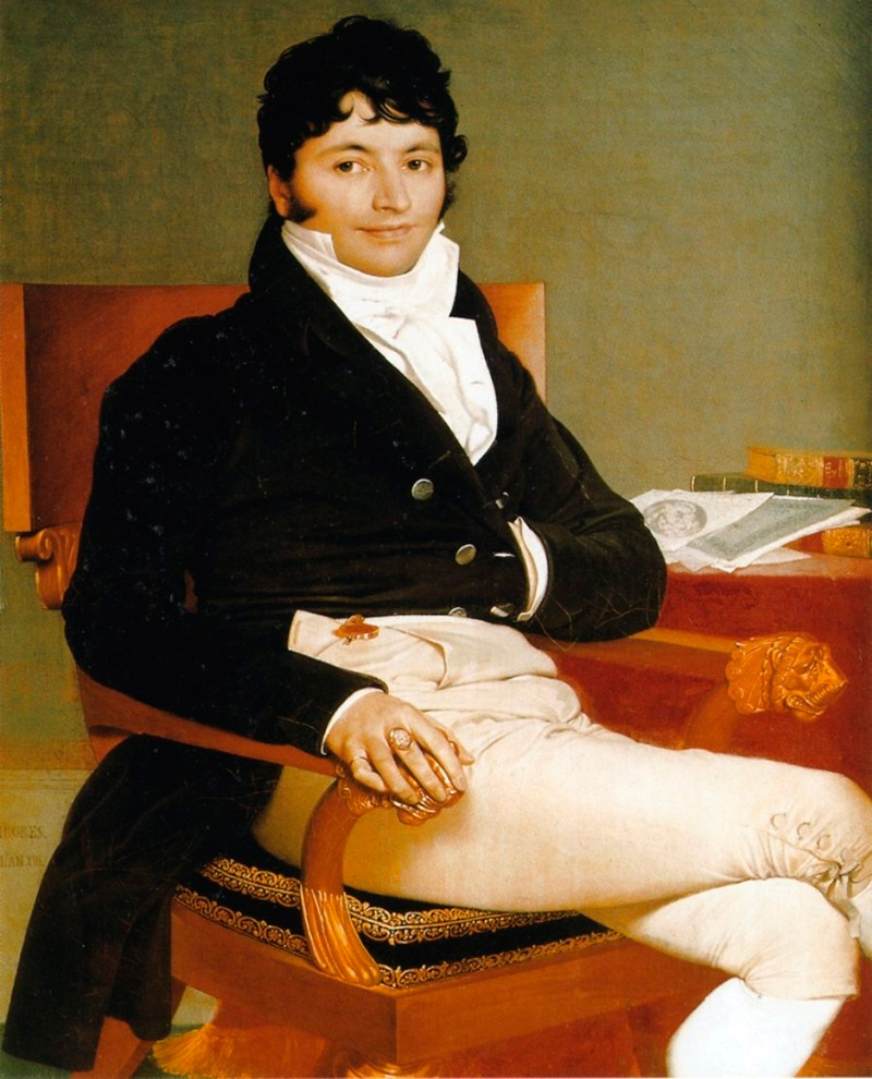 Portrait de Philibert Rivière, 1808Ainsi, au début du 19ème siècle, les bas et les jupes-culottes courtes ont été remplacés par des pantalons longs, des pantalons - jusqu'aux chevilles. Ce pantalon se porte le plus souvent avec des bretelles.