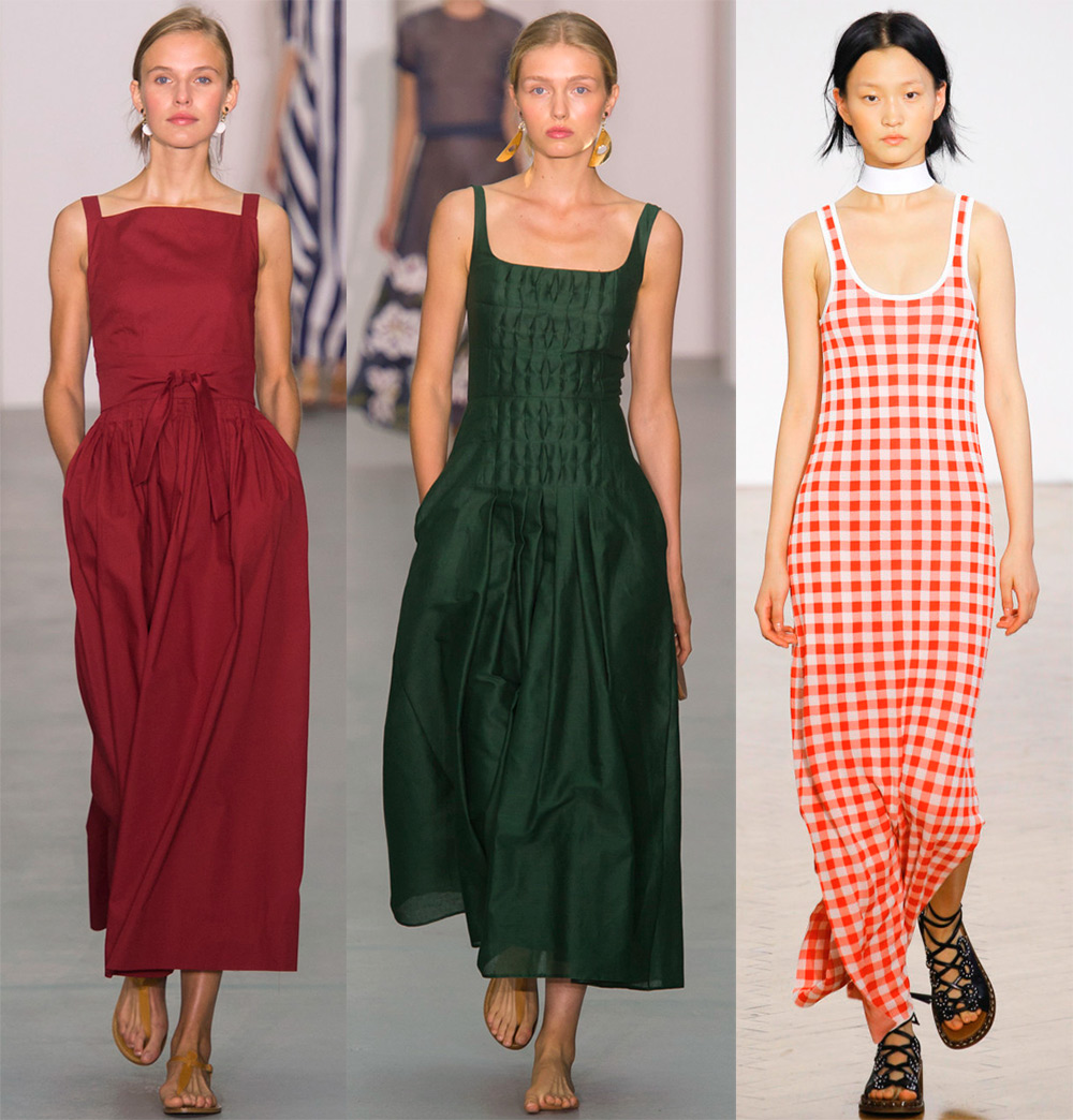 Yde, Milly, Eudon ChoiGrâce à la soie fluide ou à la dentelle aérienne, la robe d'été peut être utilisée comme une luxueuse robe de soirée. Tissus légers, volants, drapés, plusieurs couches de tissu sur la jupe - ce sont leurs principaux éléments de décoration pour une robe d'été élégante. Pour les sorties du soir, les créateurs ont présenté des produits décorés de dentelle et de résille élégante.