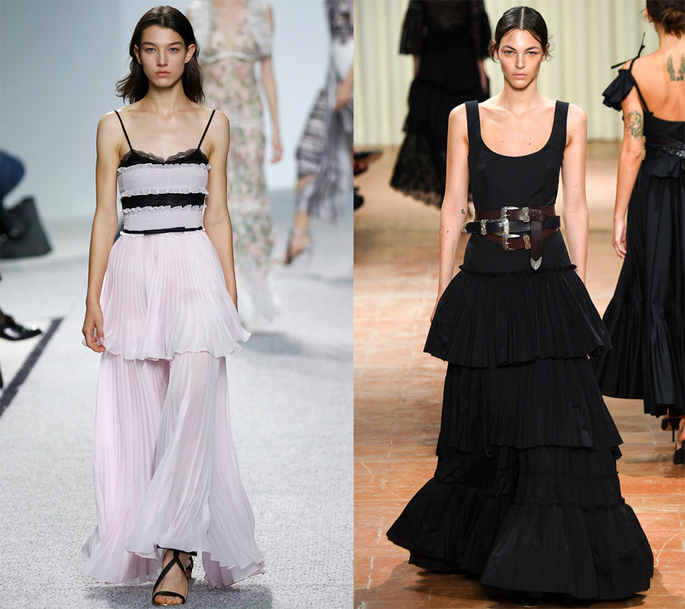 Luisa Beccaria, ChloéGravite vers des silhouettes volantes aux tissus aériens et Roberto Cavalli, Elie Saab, Roccobarocco, Luisa Beccaria, Milly. Et Roccobarocco et Luisa Beccaria, en plus d'un look aérien, renforce l'effet de romance avec des tons pastel délicats.