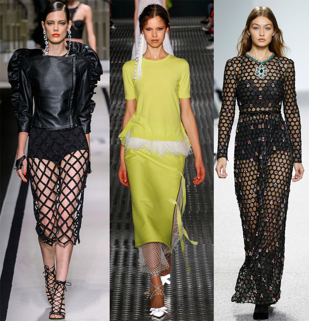 Le maillage est un matériau constitué de petites ou de grandes cellules. Au cours de la saison 2026, sur fond de transparence générale et de nudité, les créateurs utilisent ce matériau pour confectionner des robes, des jupes et des volants. Le maillage peut être n'importe quelle partie de la combinaison ou ses éléments individuels. La grille reflète