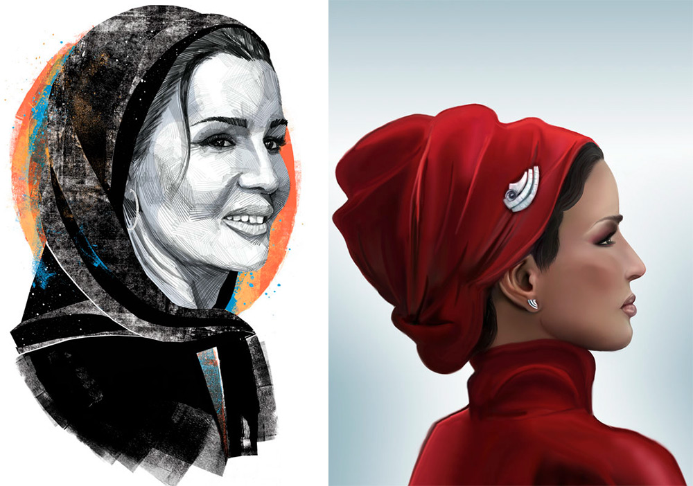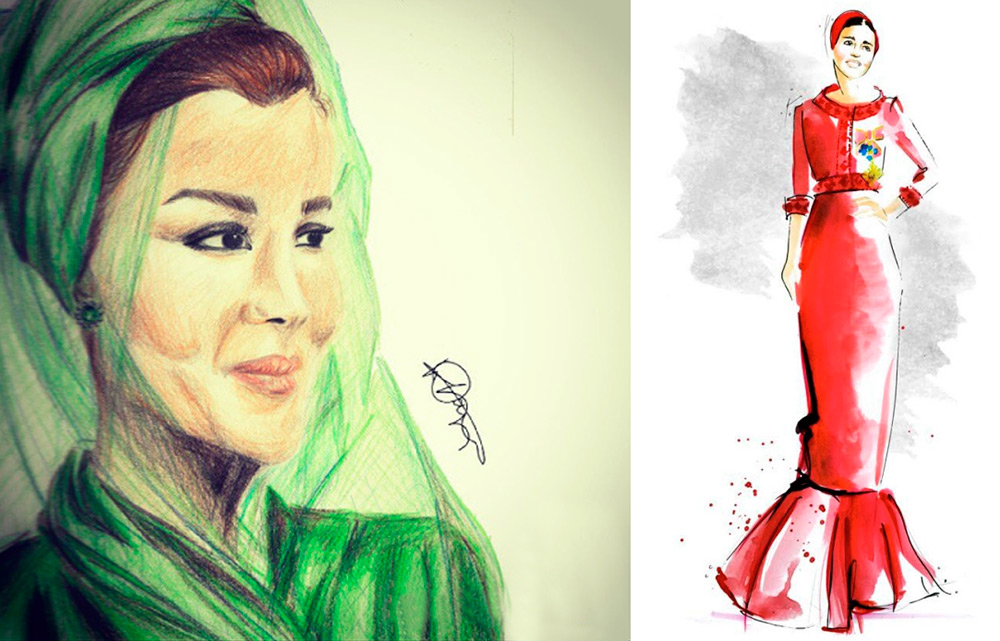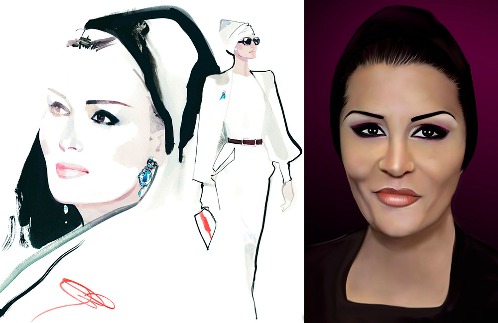 Cheikha Mozah bint Nasser al-Misned admire de nombreuses fashionistas avec sa beauté et son style. Pour certains, elle devient un modèle et une source d'inspiration. Par conséquent, nous pouvons voir non seulement des photographies, mais aussi des illustrations de mode.