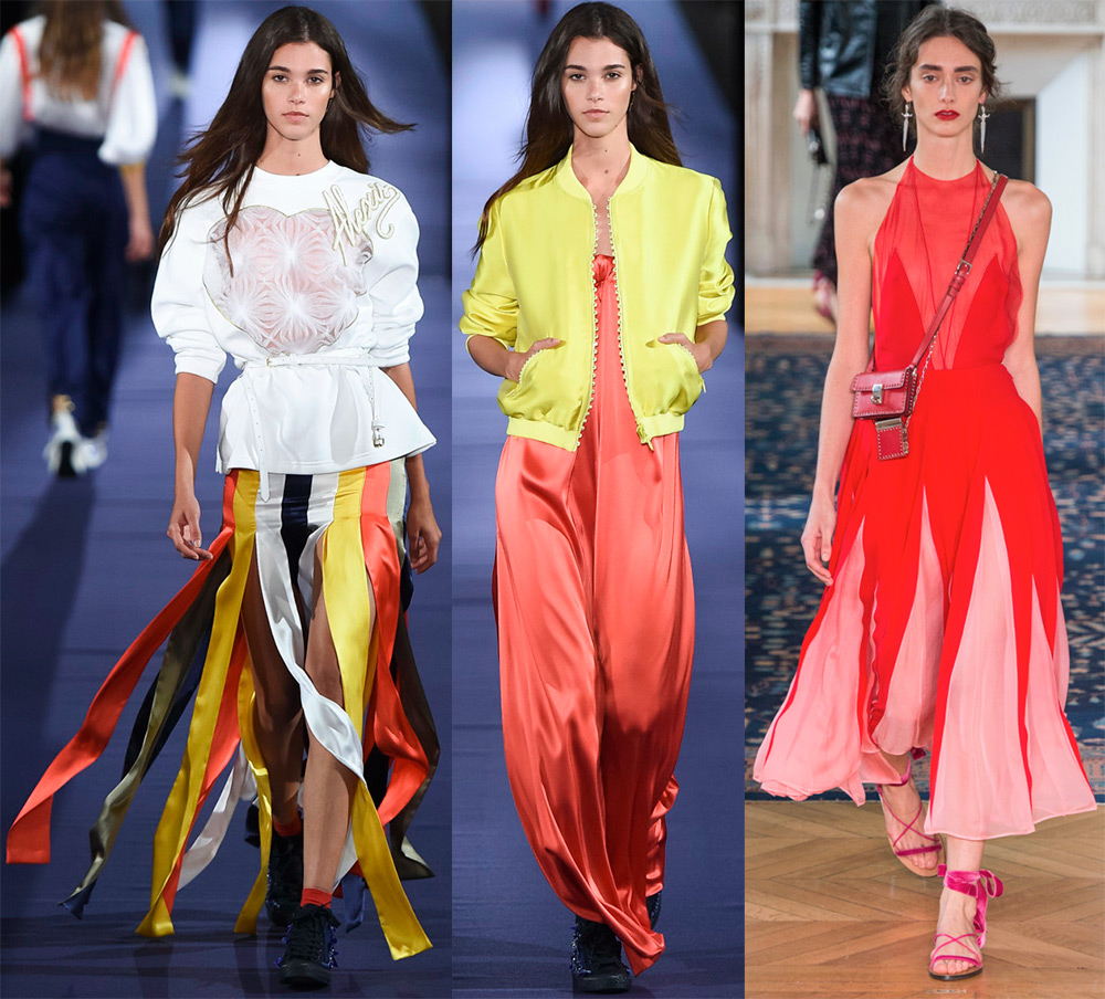 19. Palette d'un coq de feu et de nuages bleus. Ils sont rouges, oranges, jaunes. Leur combinaison dans une image est particulièrement impressionnante. En plus de ces tons, on trouve souvent une couleur bleu noble, que vous pouvez voir dans les collections de Jason Wu, Hugo Boss, Prabal Gurung et de nombreux autres designers.