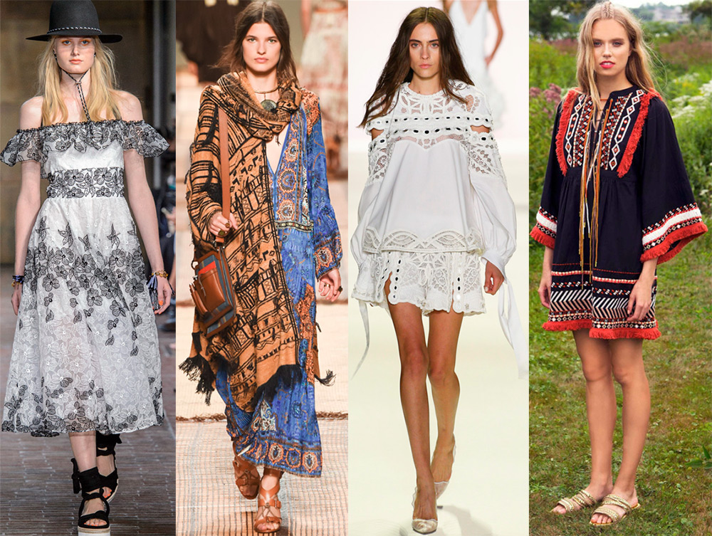 Ajoutez à tout ce qui précède qu'il existe encore des robes de style bohème. Pompons, galons, strass, imprimés fleuris et ethniques, chapeaux à larges bords, chaussons, sandales, indissociables de ce style, restent également recherchés en cette saison estivale 2026. Mais pour vous démarquer, portez-les avec des bottes brutes et des vestes en daim .
