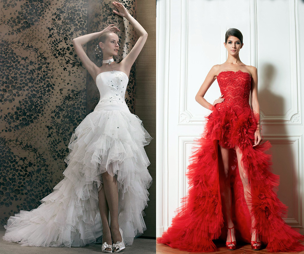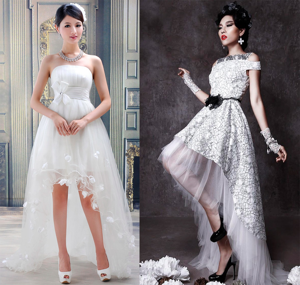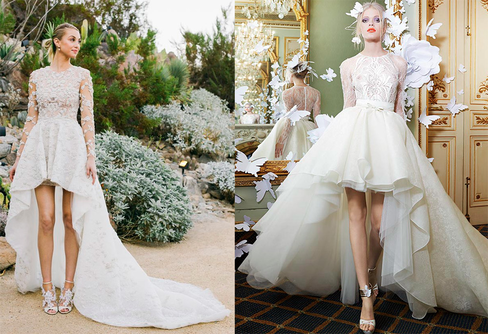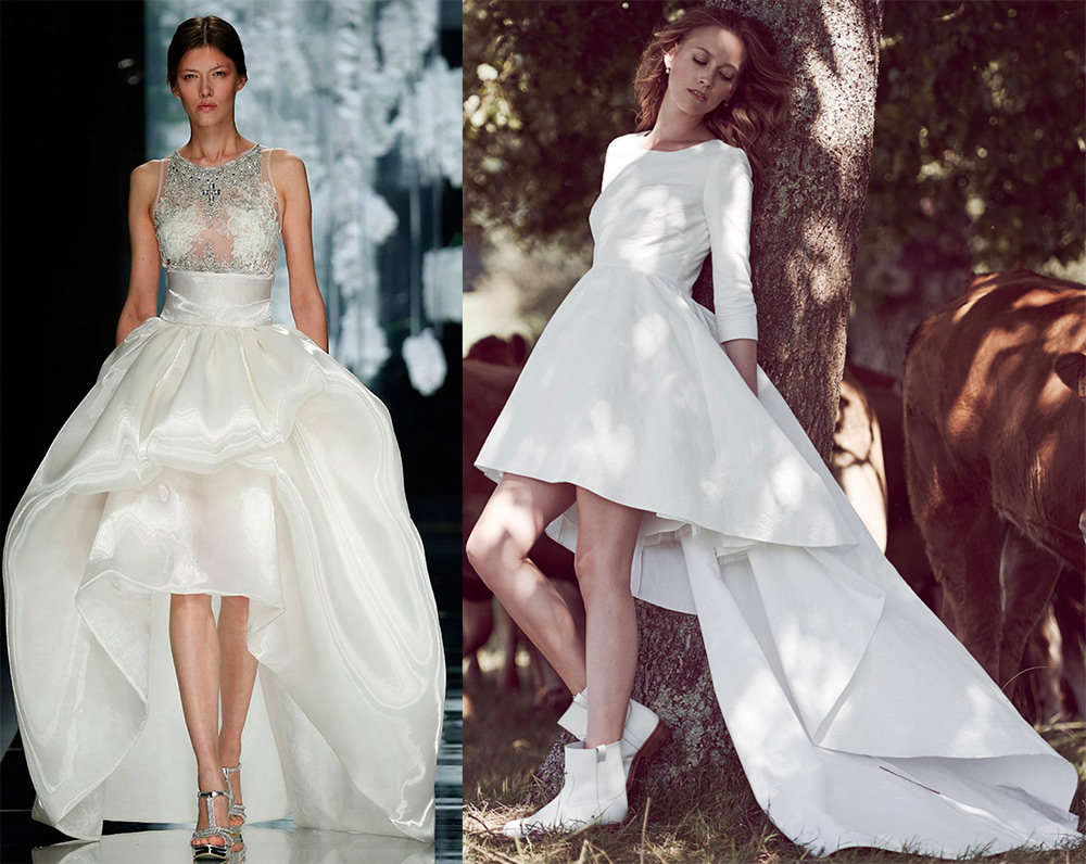 Au-delà, soyez réaliste quant à votre silhouette et la longueur de l'ourlet avant. Pour les filles minces, vous pouvez acheter une robe de mariée courte, et pour les propriétaires de formes tout en courbes, il est préférable de choisir un modèle avec une jupe plus longue. Le style du mulet attirera l'attention des invités et de leur entourage, vous devez donc vous sentir en confiance lorsque vous vous retrouvez au centre de l'attention dans une telle tenue lors de votre mariage.