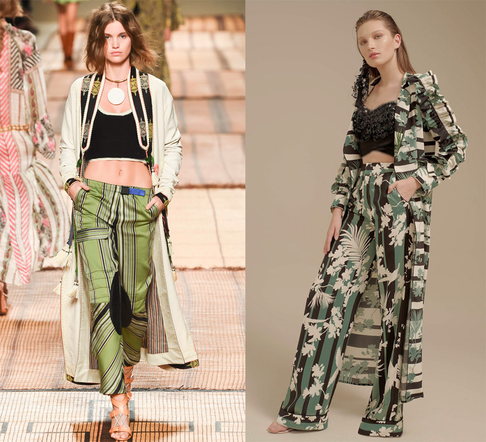 Ellery, Mary KatrantzouPuisqu'une robe avec un pantalon est une tenue venue d'Orient, les motifs ethniques sur des tissus fluides légers et des bordures à franges deviendront l'option la plus sophistiquée dans le style ethnique. Vous retrouverez toujours la splendeur et le luxe des robes orientales, une combinaison inhabituelle d'imprimés et de contrastes de couleurs dans les collections Etro.