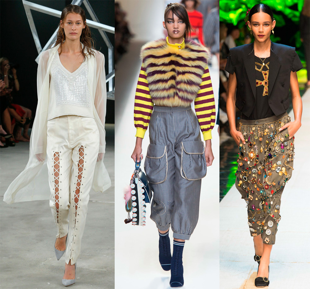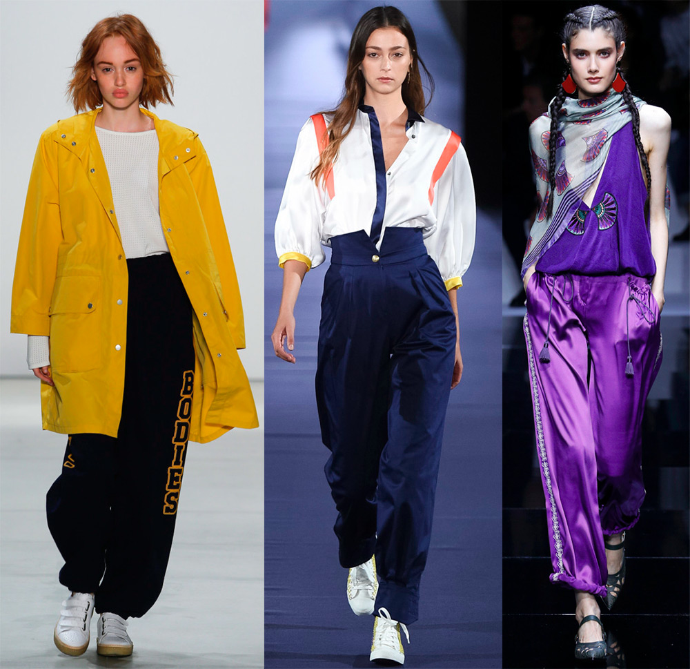 Il y avait beaucoup de modèles de pantalons de sport sur les podiums, c'est difficile à énumérer. Il existe des options pour les pantalons de survêtement classiques, et il y a ceux qu'il est préférable d'enfiler sur le terrain de sport et de se fixer un objectif, perdre du poids.
