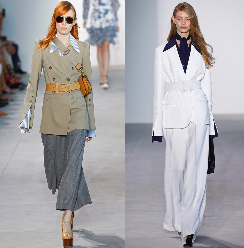 Ermanno Scervino, Laura Biagiotti, Brandon MaxwellLes costumes de la collection Michael Kors ont un look business. Le designer Michael Kors crée toujours des pièces que n'importe quelle femme peut porter. Dans les ensembles présentés, une veste avec une taille accentuée par une ceinture se marie aussi bien avec un pantalon long qu'avec un pantalon court. La combinaison avec des jupes-culottes est très populaire.