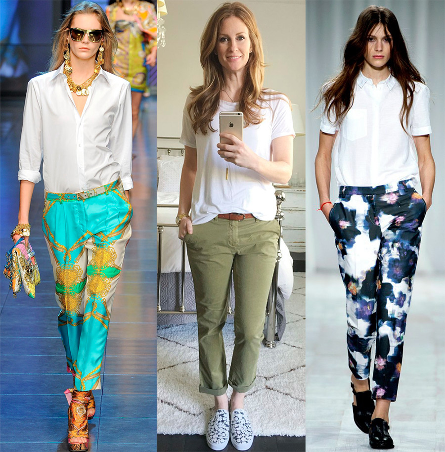 Les pantalons chino sont ces pantalons qui ont l'air un peu décontractés, mais vous pouvez créer avec eux l'image d'une fille élégante et élégamment vêtue.